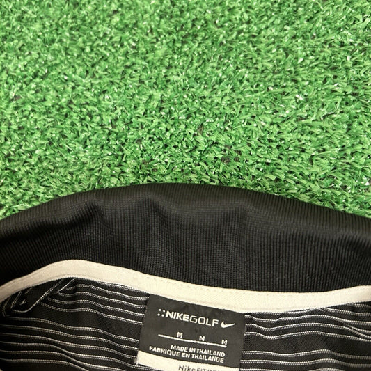 Nike Golf Polo Shirt Mens Medium Black White Striped Short Sleeve Dri-fit Preppy