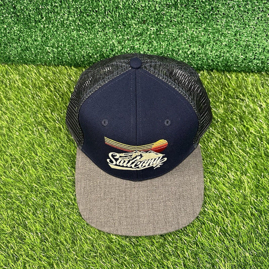 Saucony Trucker Hat Cap Mens Snapback Navy Gray Embroidered Wool Mesh Back