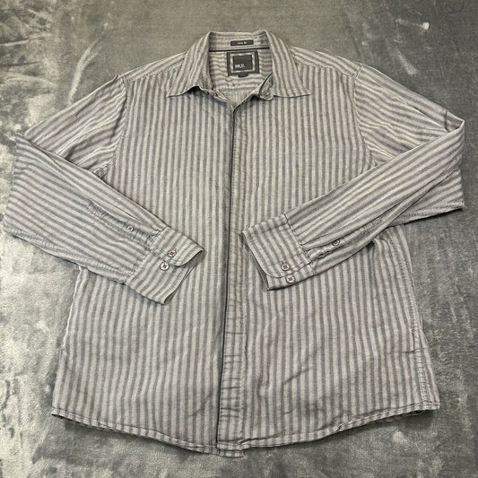 BKE Shirt Mens Extra Large Gray Striped Button Up Long Sleeve Work Slim Fit