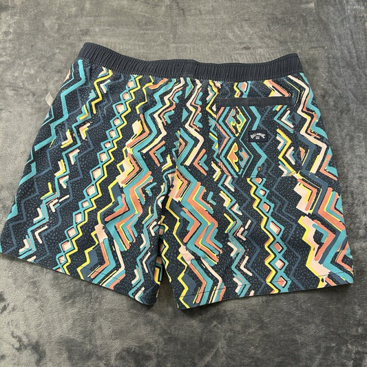 Billabong Board Shorts Mens Large 34" Blue Striped Aztec Hybrid Drawstring NEW