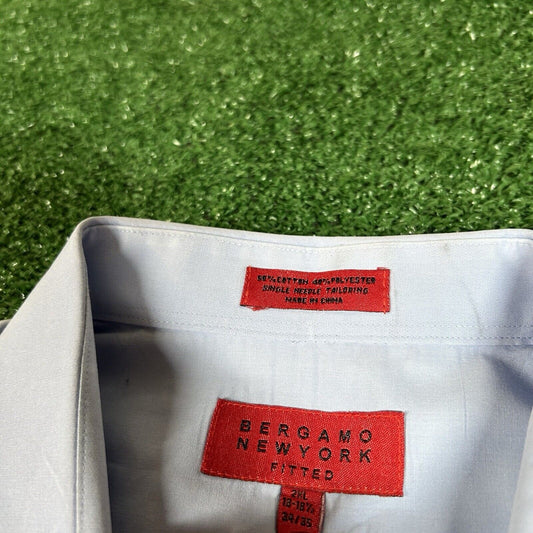 Bergamo New York Shirt Mens XXL 2XL Blue 18-18.5 34/35 Button Up Long Sleeve