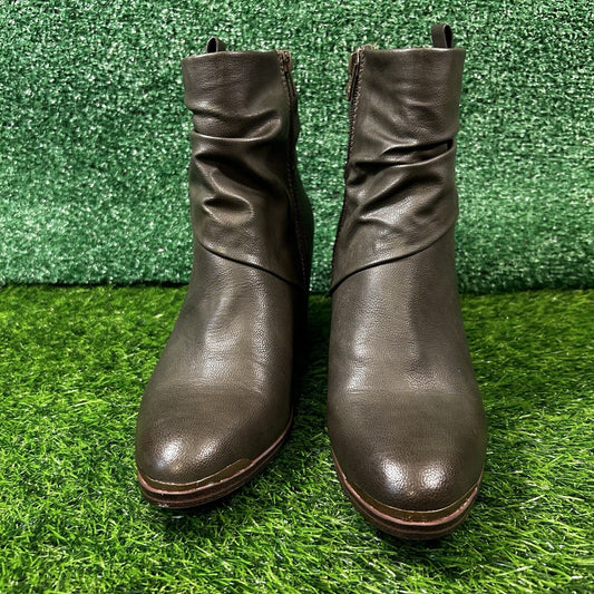 Baretraps Katherine Boots Womens 9.5 M Dark Green Heeled Zip Up Buckle Casual