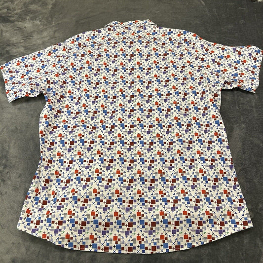 Cremieux Shirt Mens Extra Large White Geometric Button Up Short Sleeve NEW $59