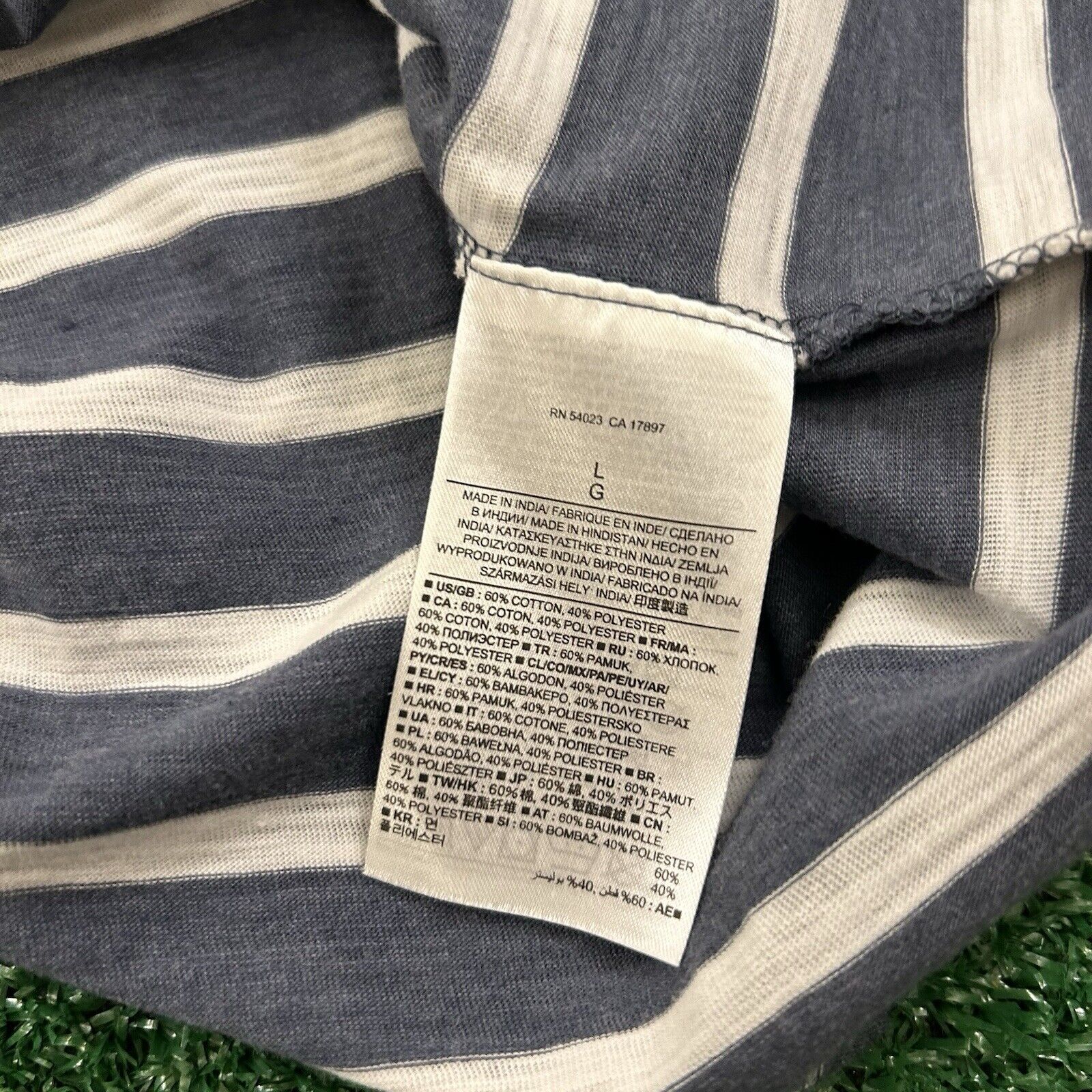 Banana Republic Polo Shirt Mens Large Blue/Gray White Striped Short Sleeve Golf