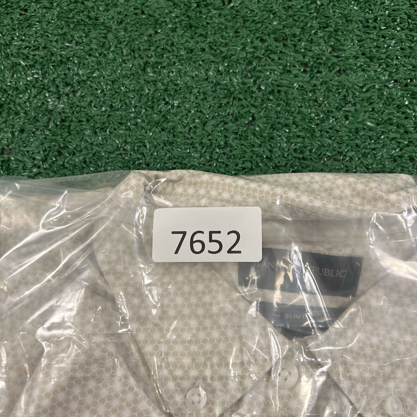 Banana Republic Shirt Mens Large Tall Beige Geometric Button Up Short Sleeve