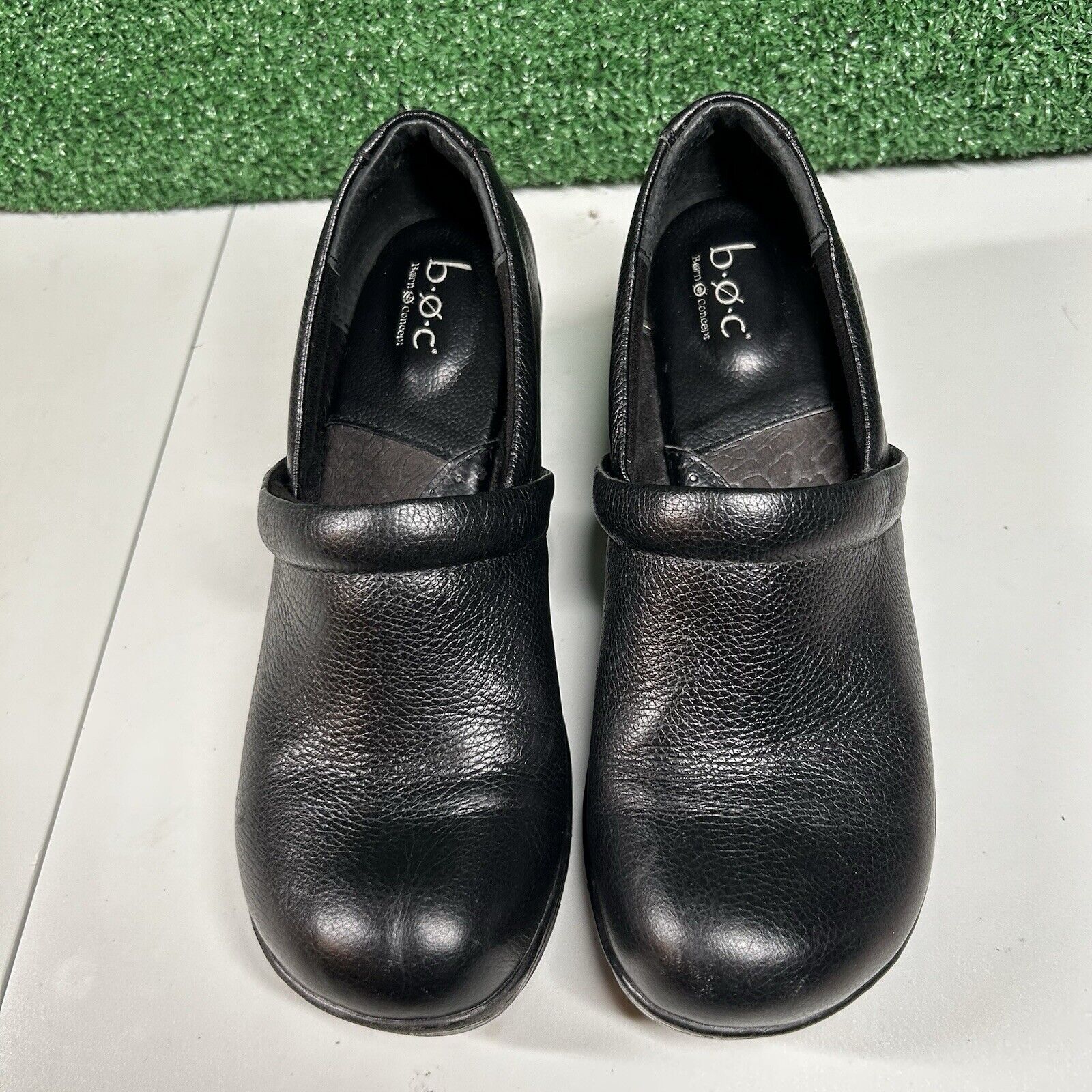 Born Boc Nadiyya Clogs Womens 8.5 M Black Pebbled Leather Shoes Slip On Nurse