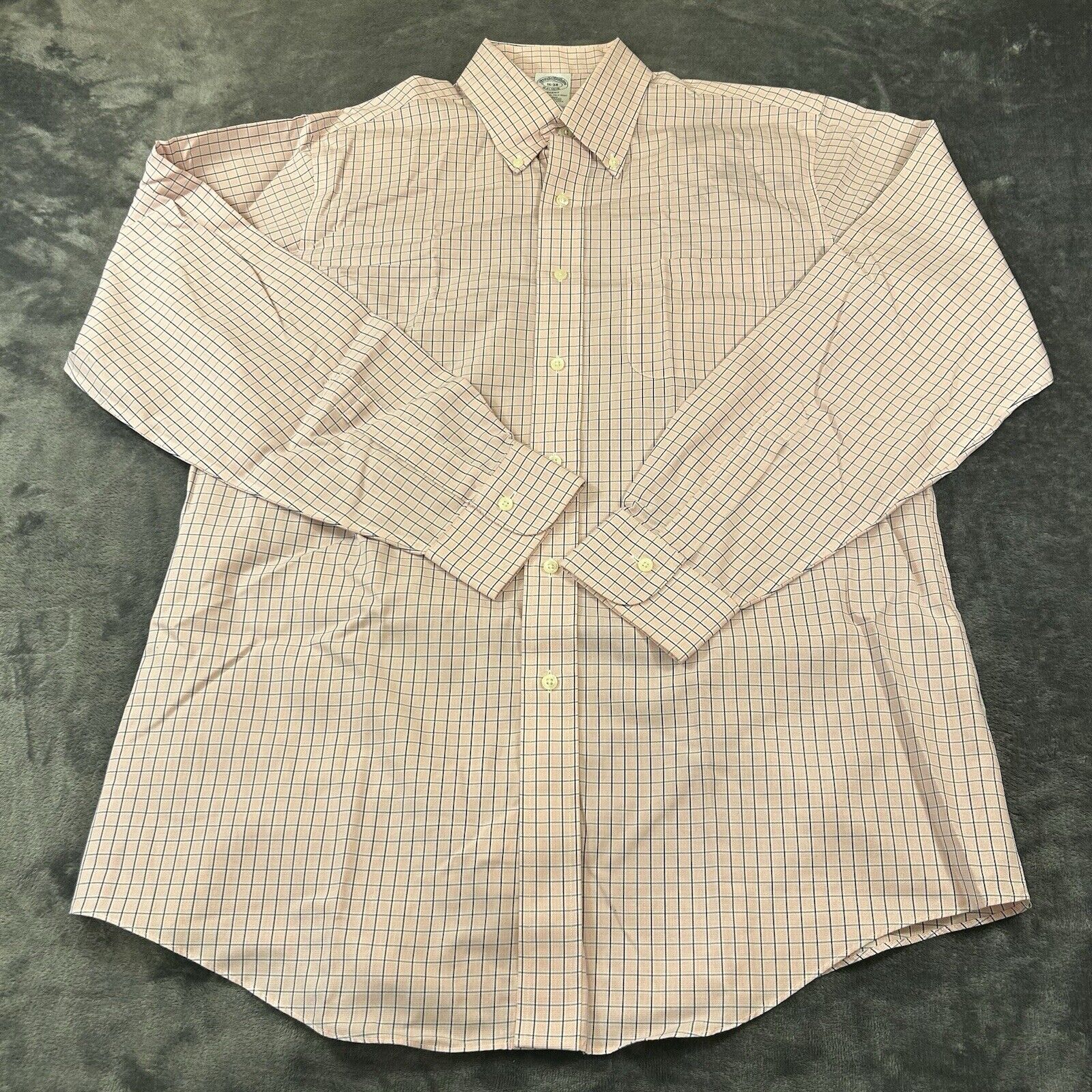 Brooks Brothers Shirt Mens 16 35 Pink Blue Check Button Up Long Sleeve Regent