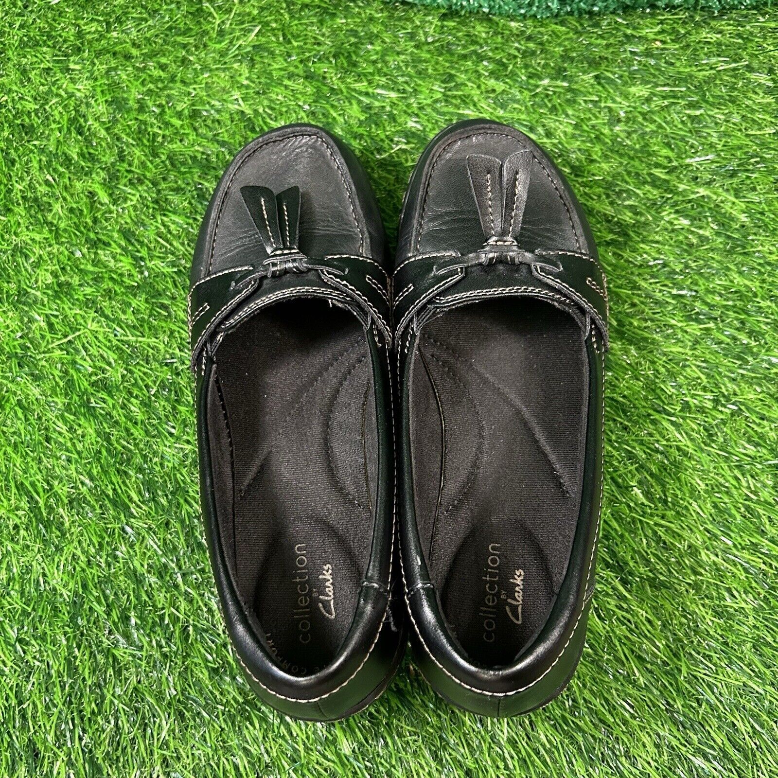 Clarks Ashland Bubble Loafers Womens 5.5 M Black Leather Shoes Comfort Tasseled