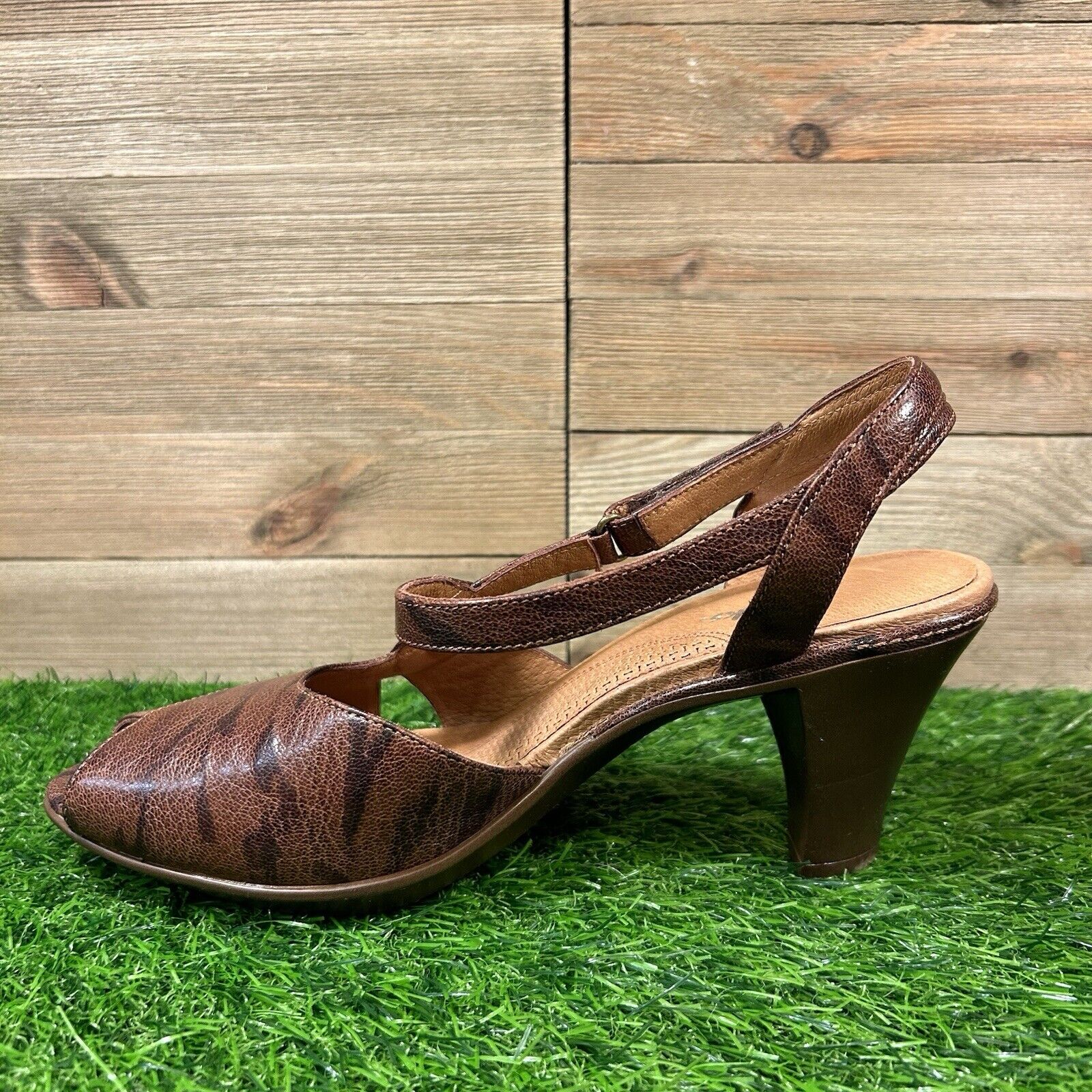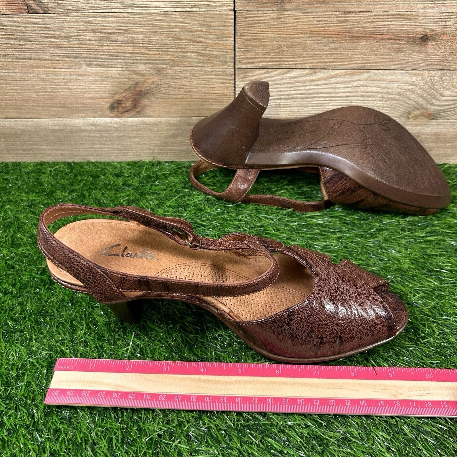 Clarks Eliza Sandals Womens 8 M Brown Slingback Hook & Loop Heeled Peep Toe