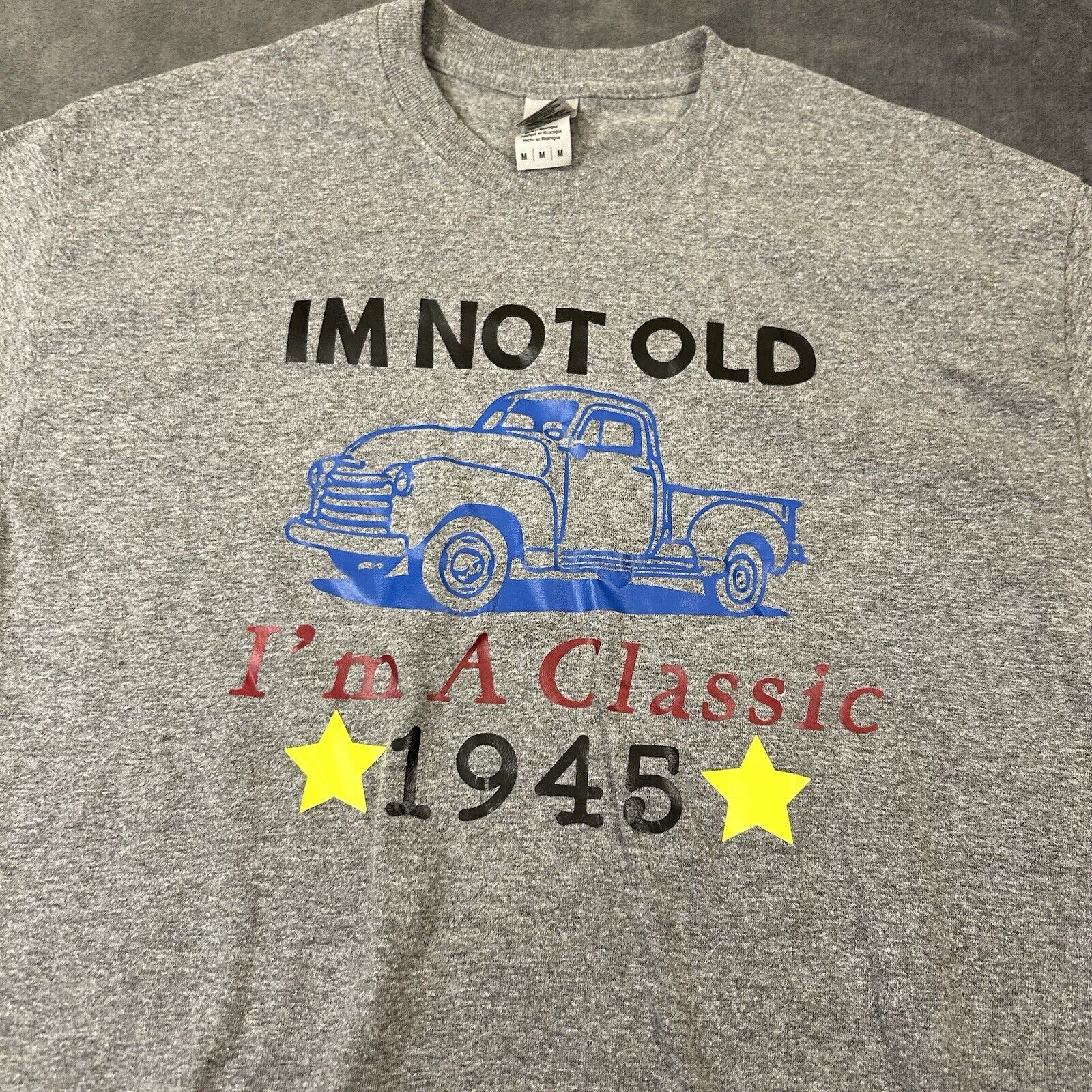 Classic Cars Shirt Mens Medium Gray Short Sleeve 1945 'Im Not Old' Gildan Heavy