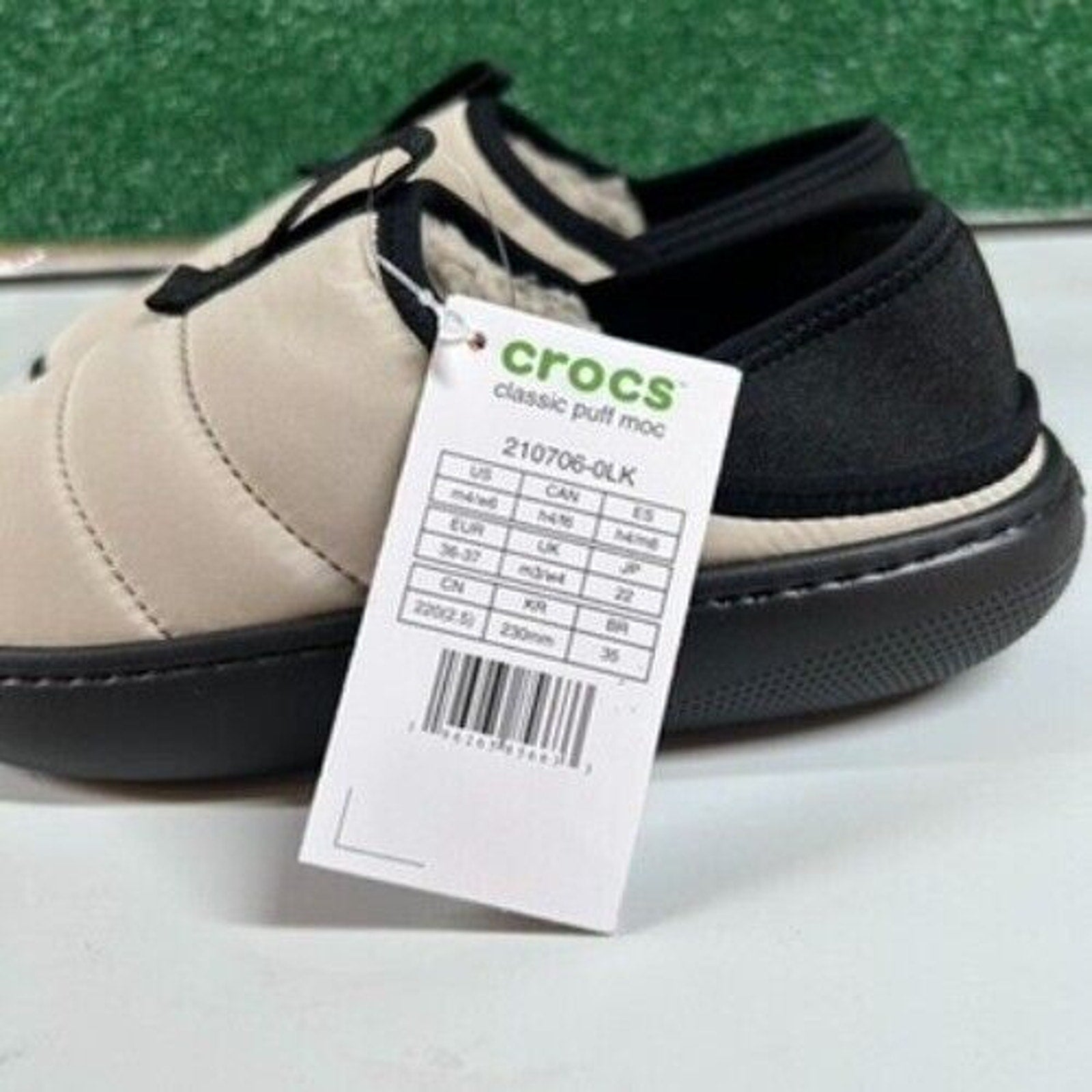 Crocs Classic Puff Mocs Beige Black Slip On Casual Comfort Shoes Womens 6 New