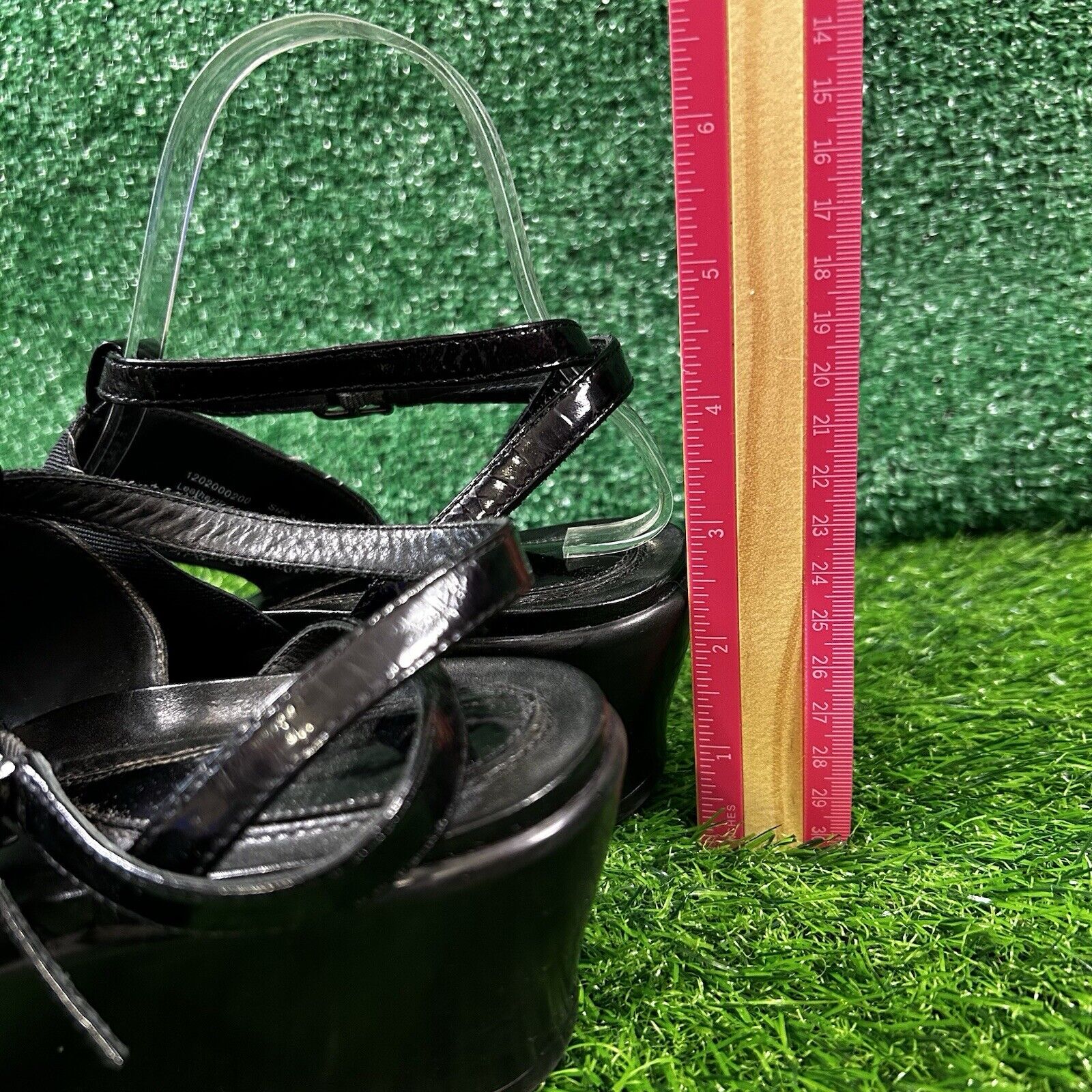 Dansko Addison Sandals Womens 8 M Black Patent Leather Wedge Ankle Strap Outdoor