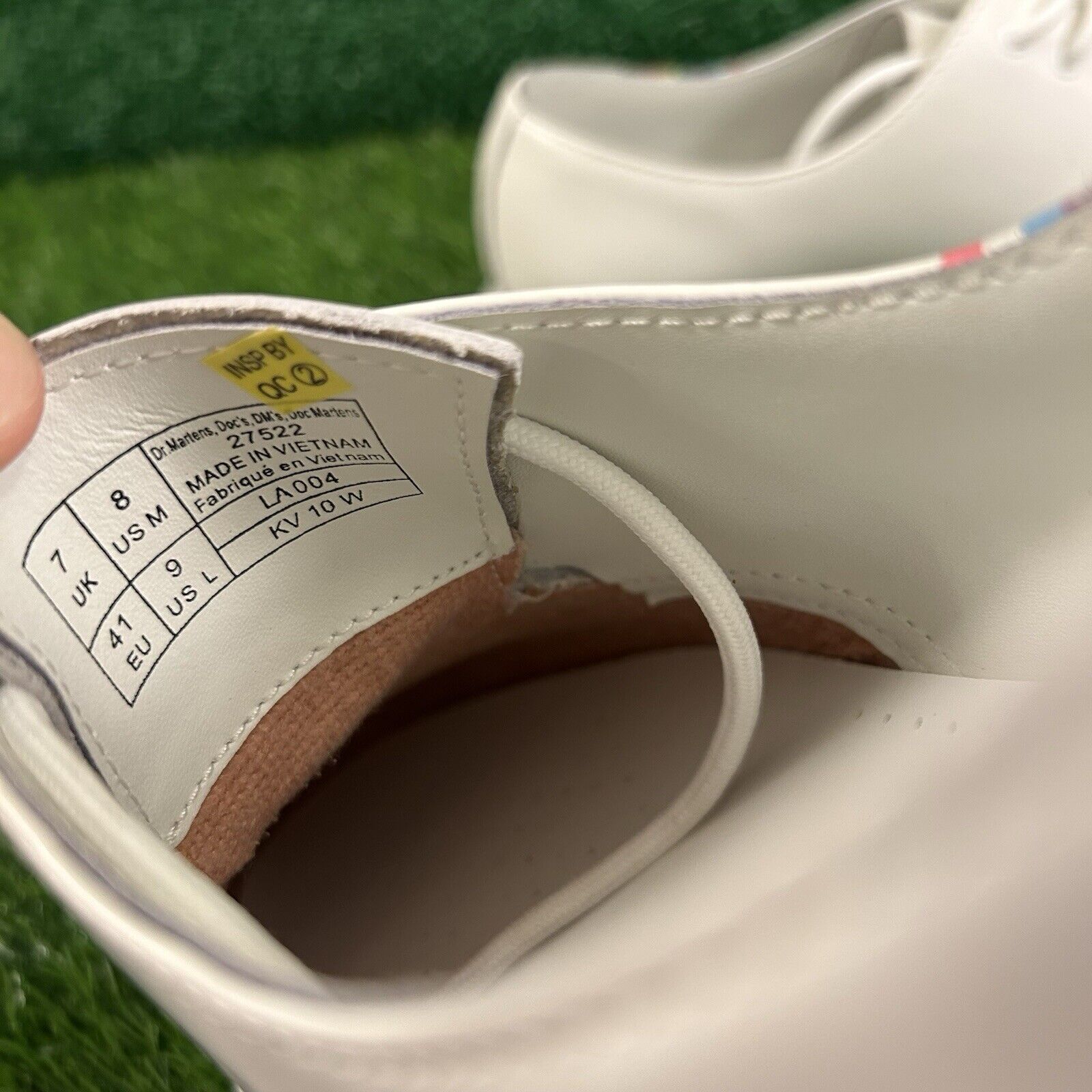 Dr Martens Oxford Pride Womens 9 White Leather Shoes Lace Up 27522 Preppy New