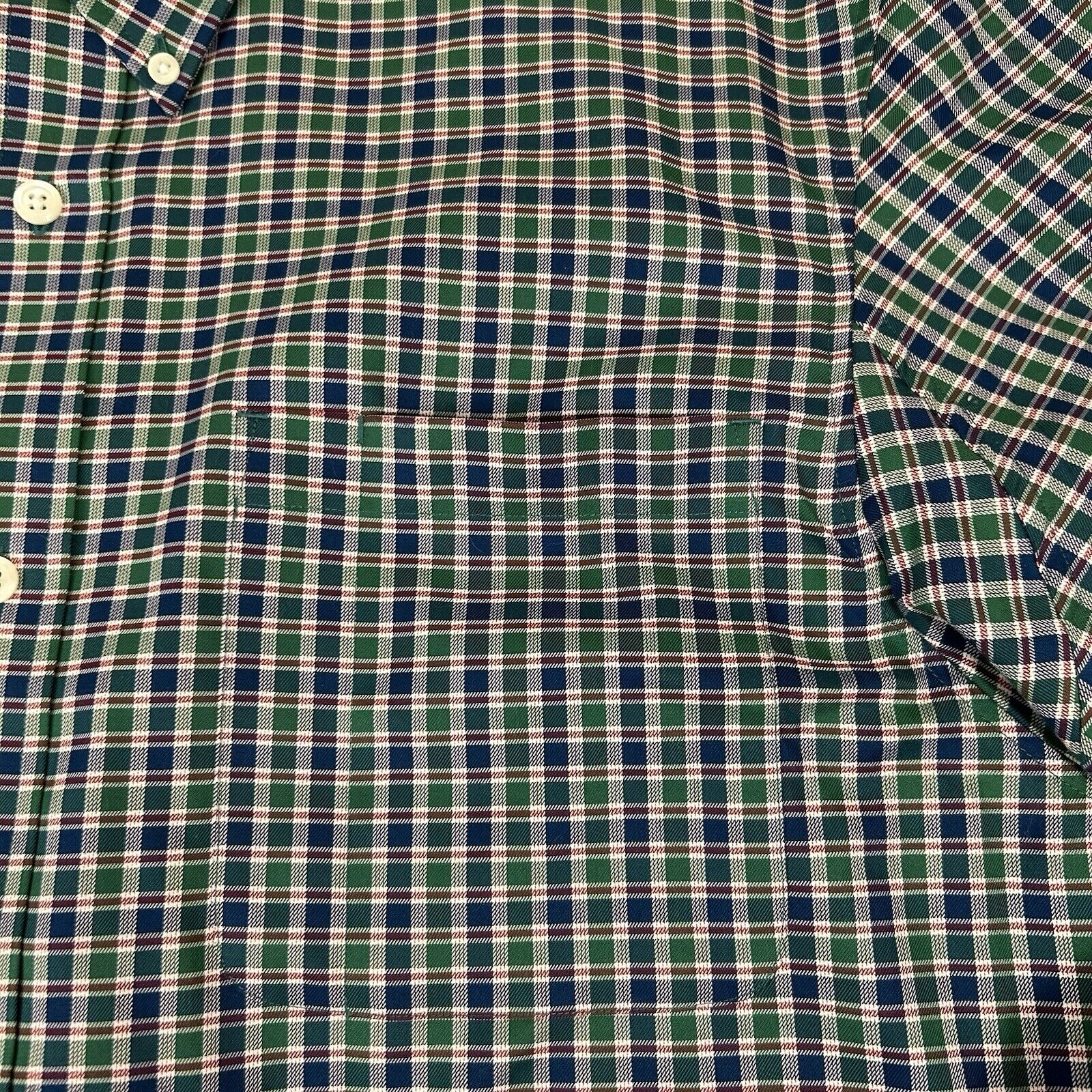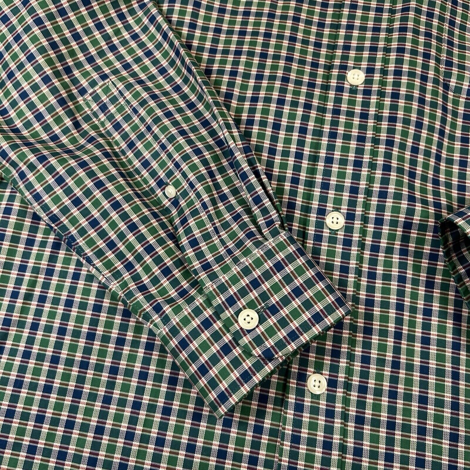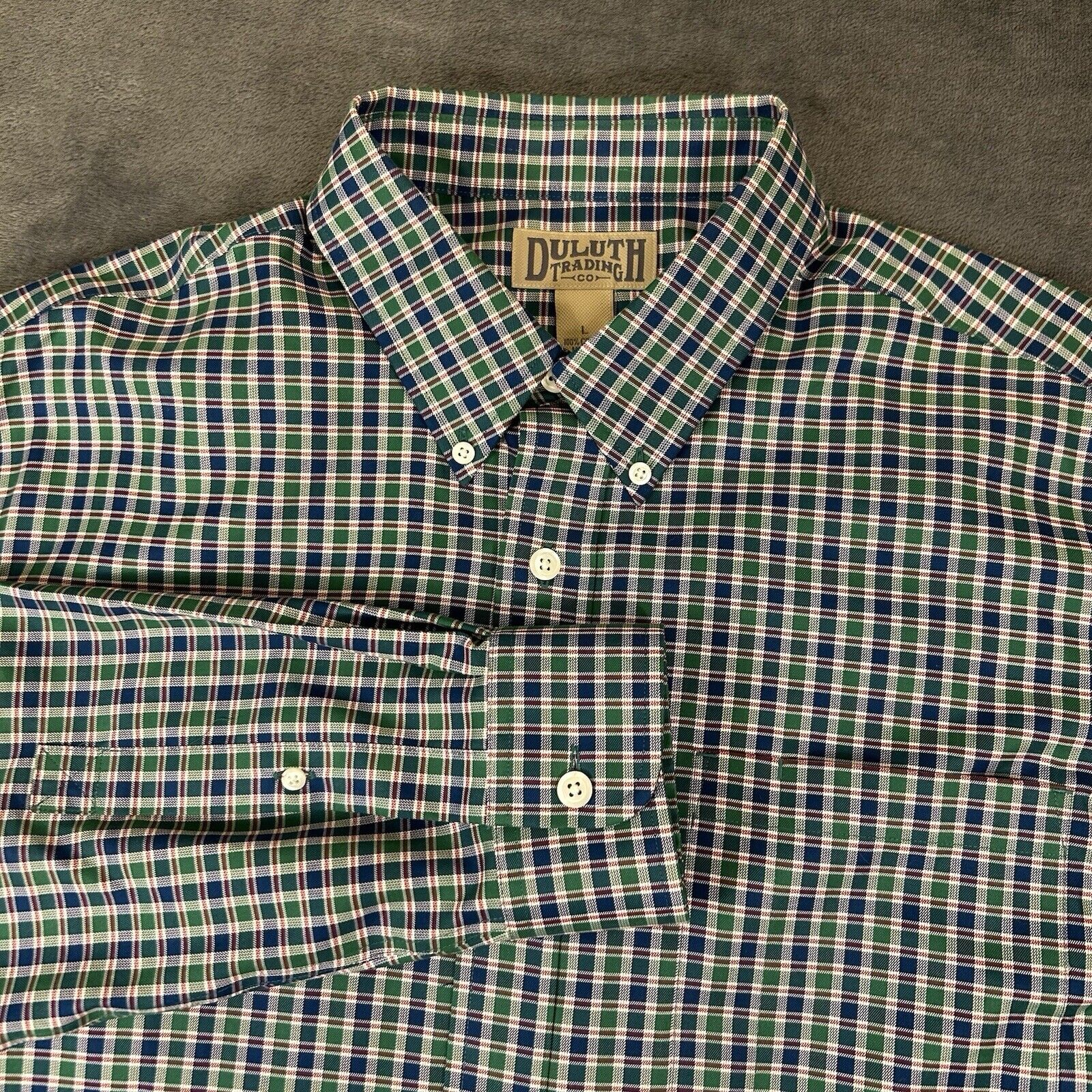 Duluth Trading Shirt Men Large Green Blue Check Button Up Long Sleeve Colorful