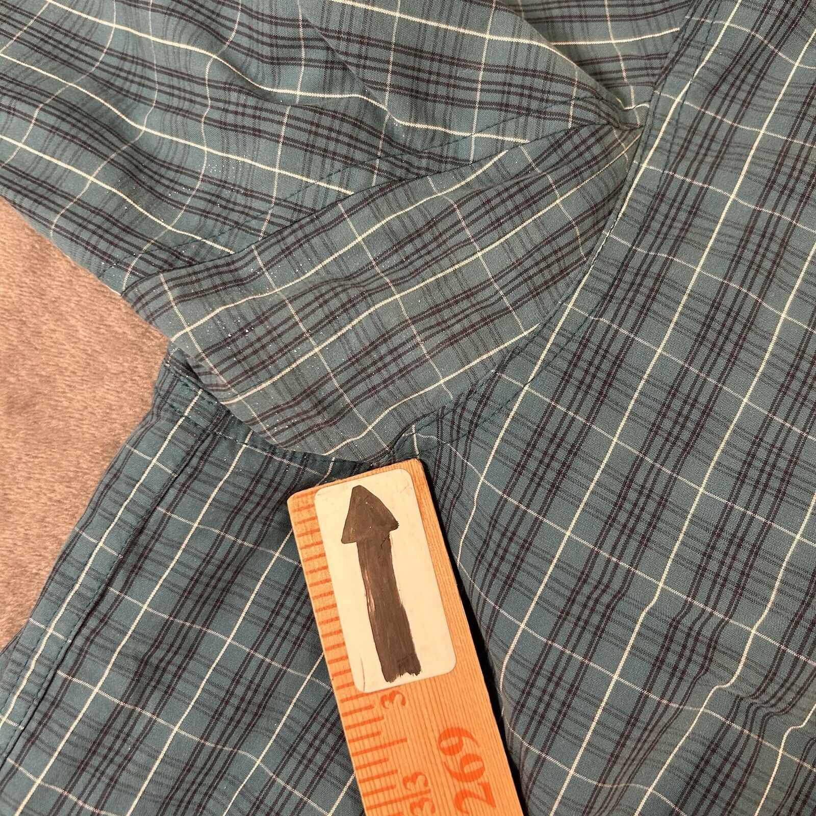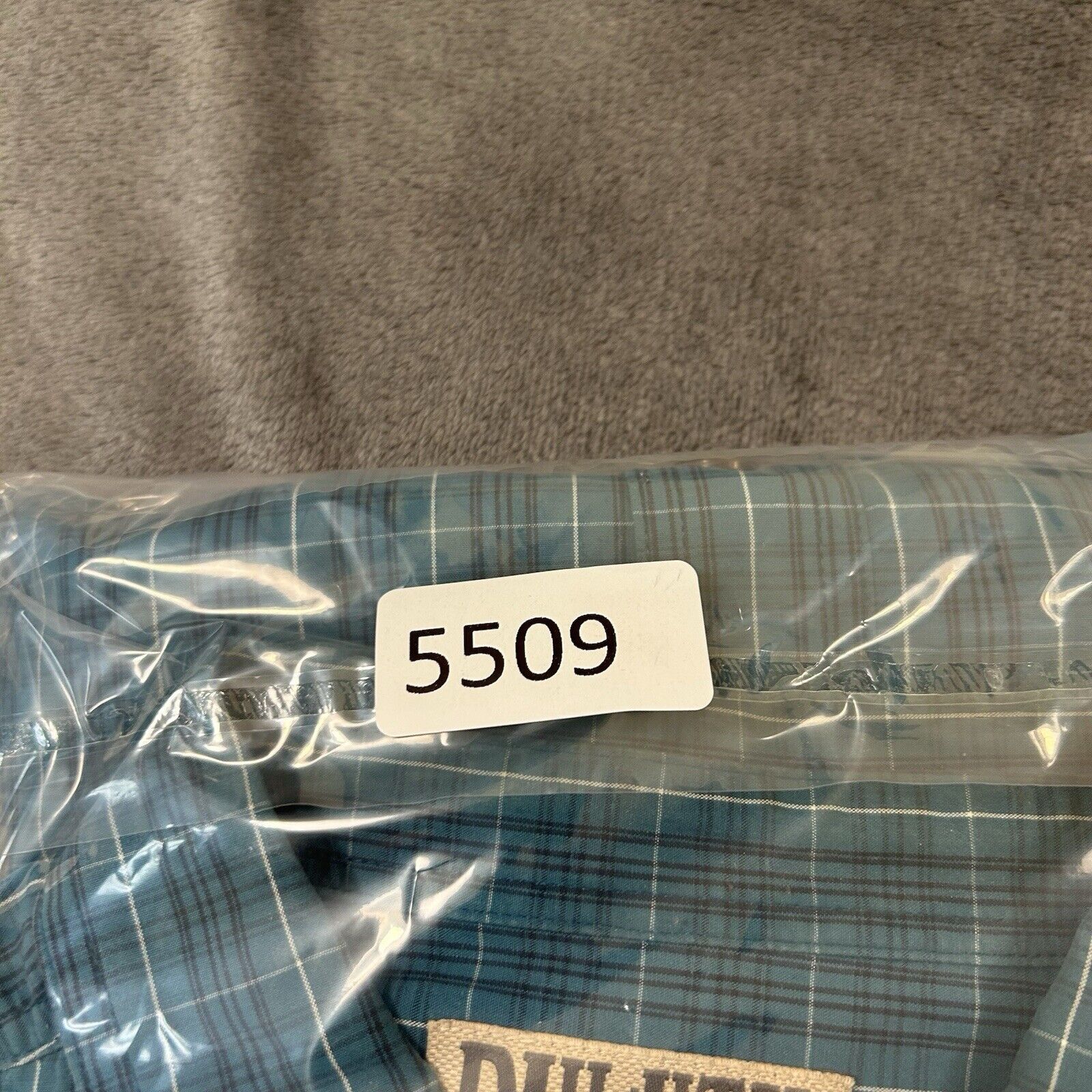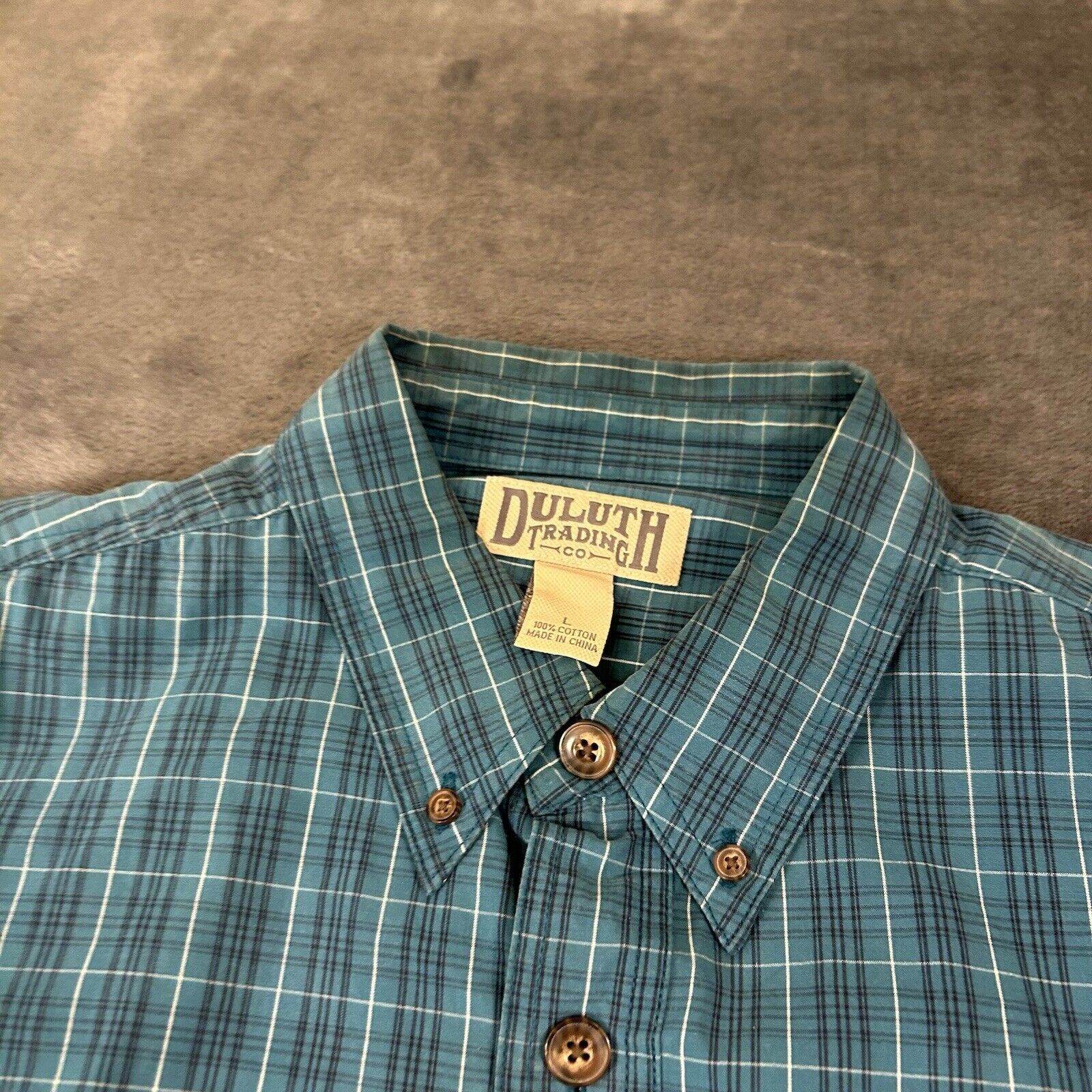 Duluth Trading Shirt Men Large Turquoise Check Preppy Button Up Long Sleeve Work