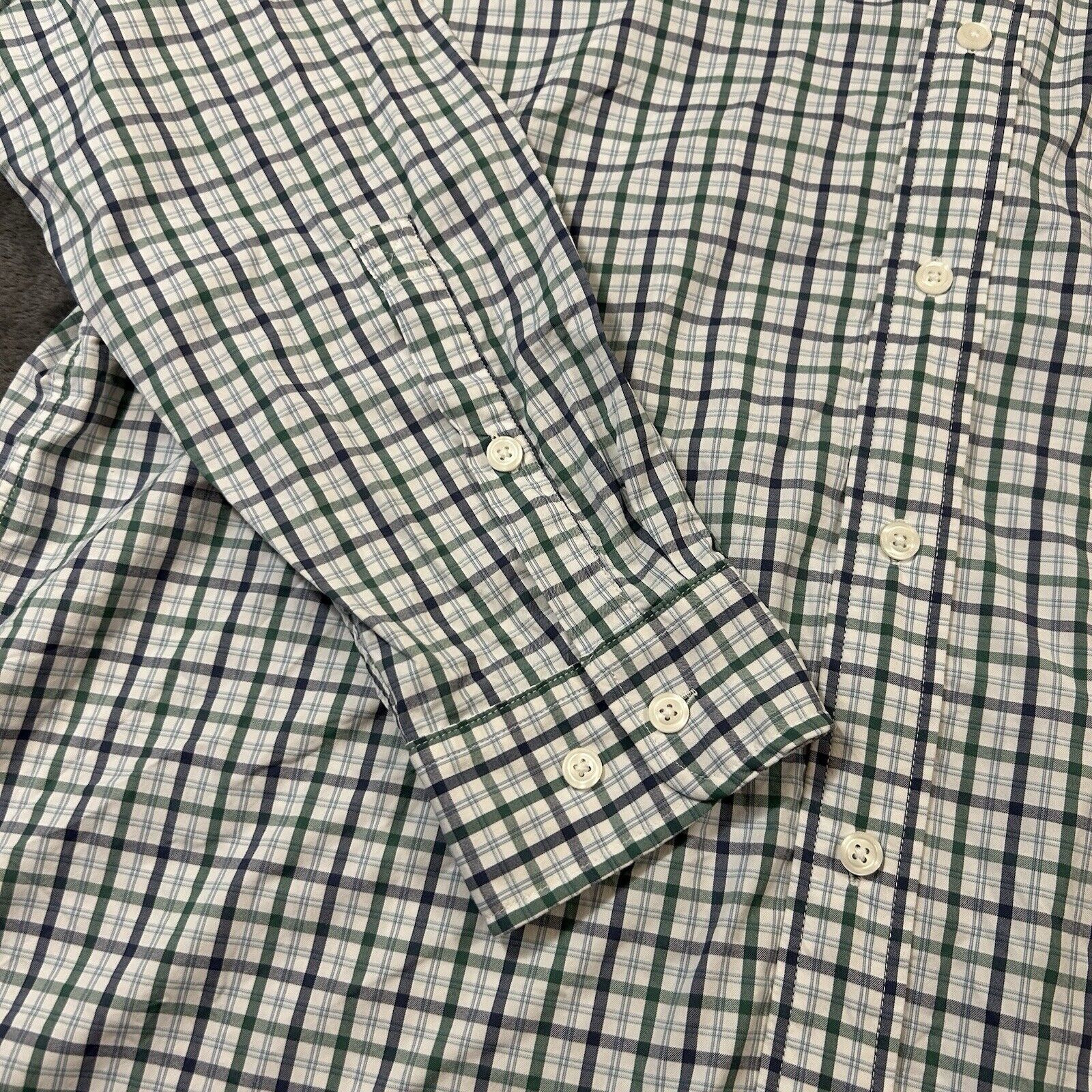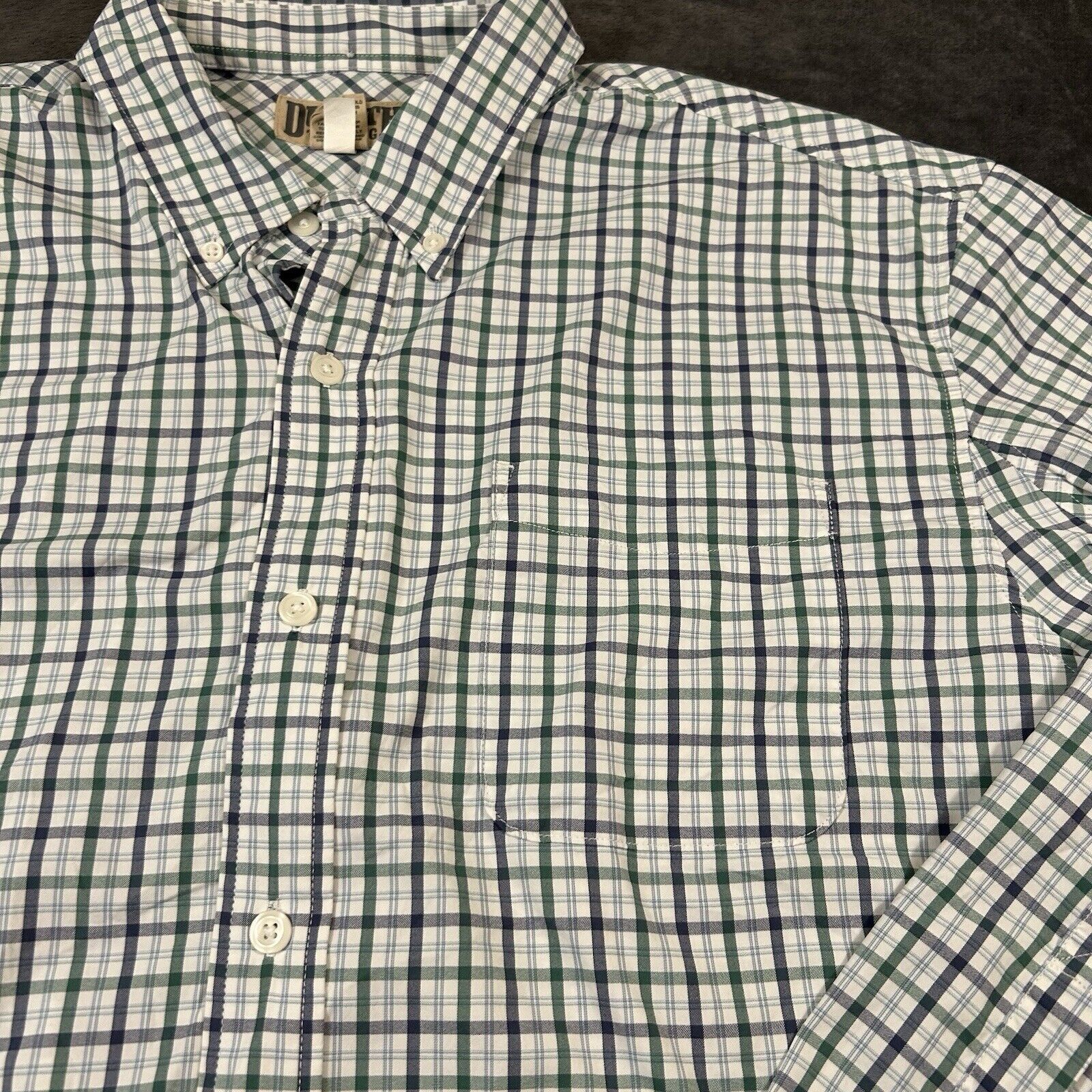 Duluth Trading Shirt Mens Extra Large White Green Check Button Up Nylon Stretch