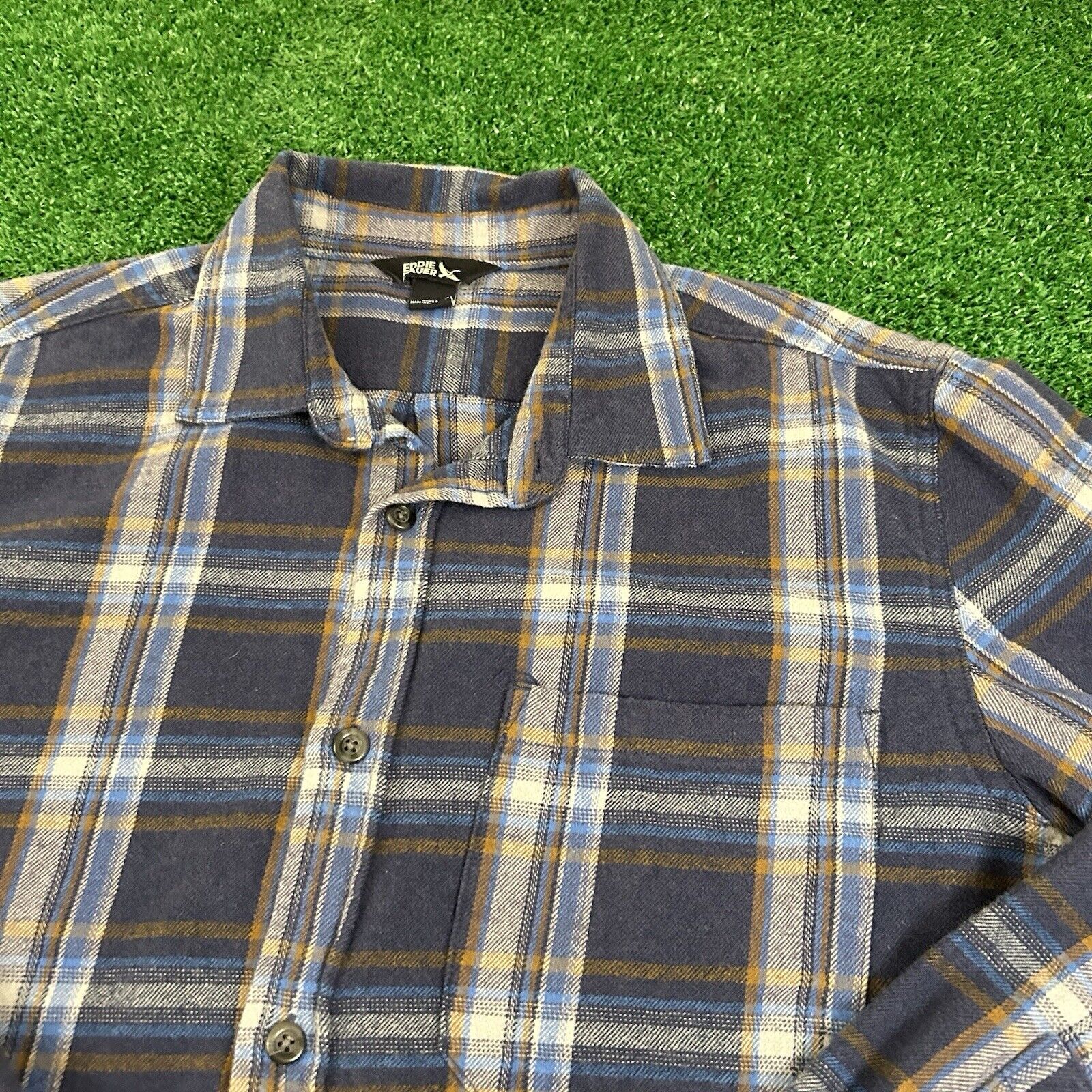Eddie Bauer Flannel Shirt Mens Medium Blue Plaid Button Up Long Sleeve Outdoor