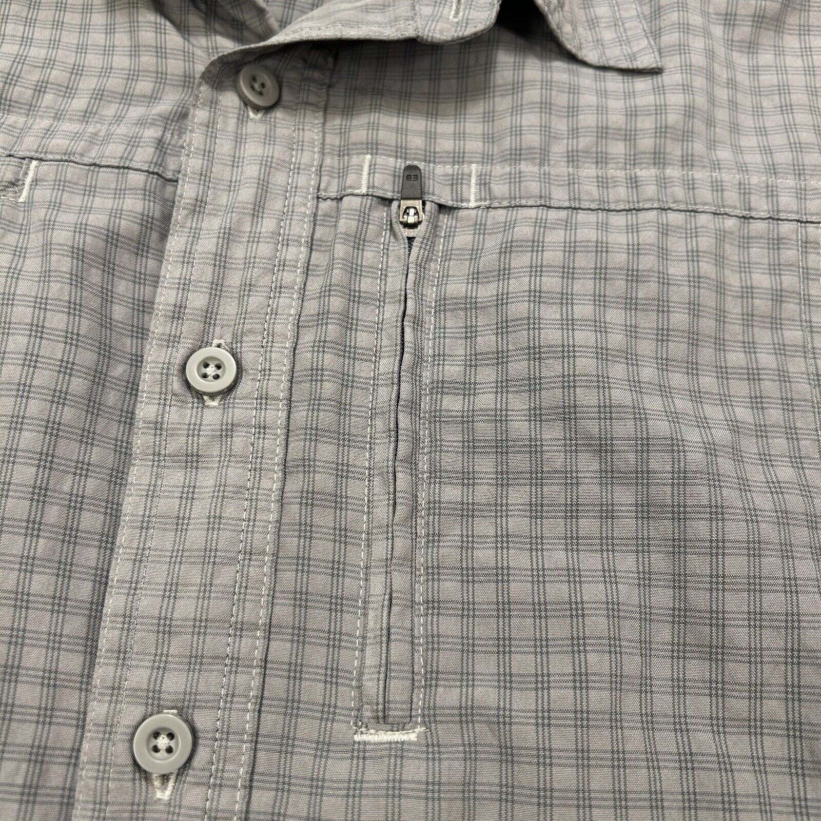 Eddie Bauer Shirt Mens Large Tall LT Gray Plaid Button Up Short Sleeve Pockets