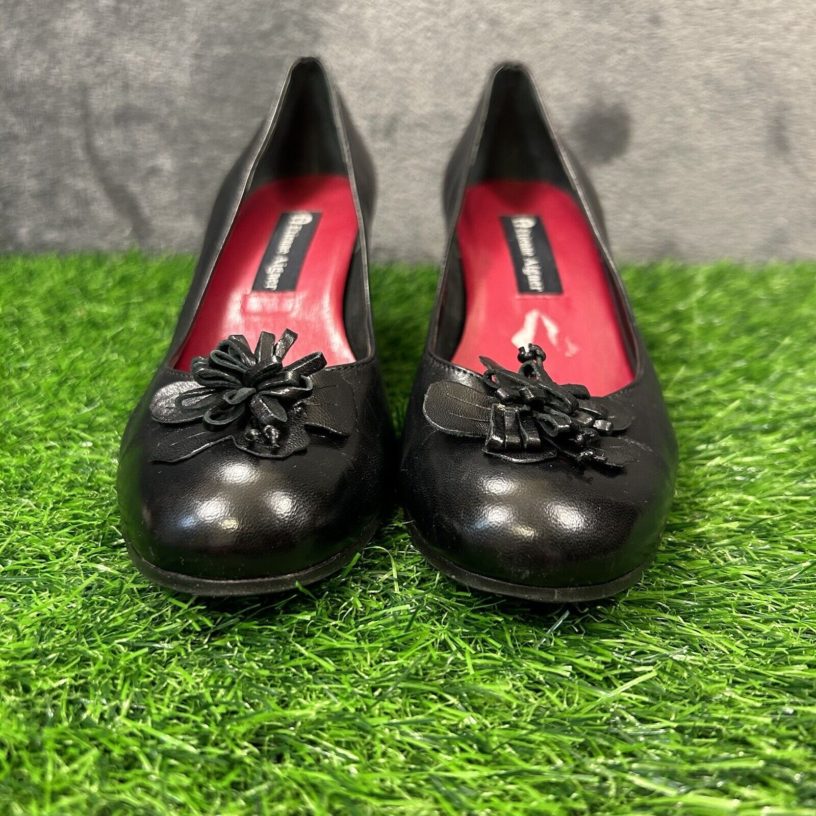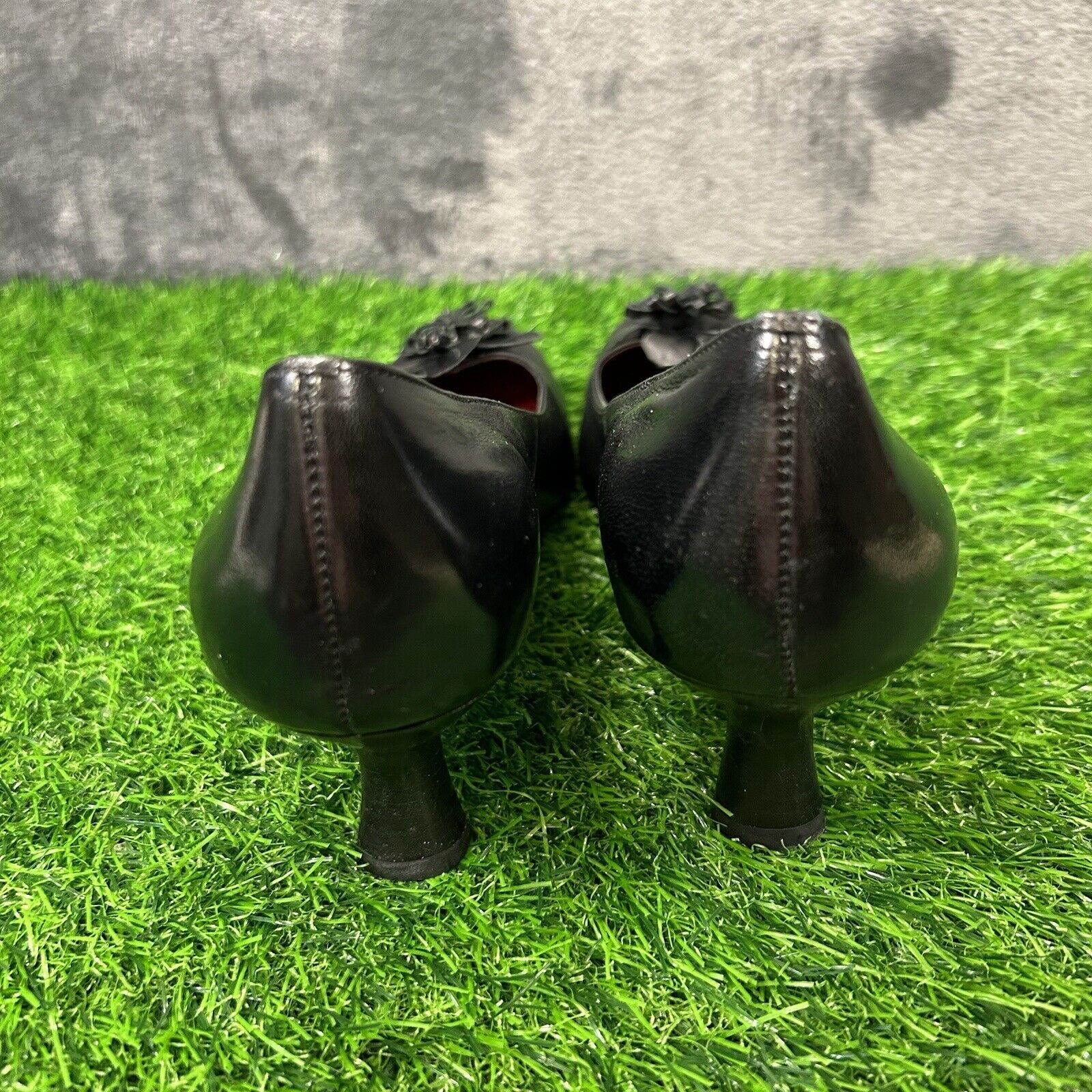 Etienne Aigner Heels Womens 7.5 M Black Pumps Leahter Casual Work Flower Preppy