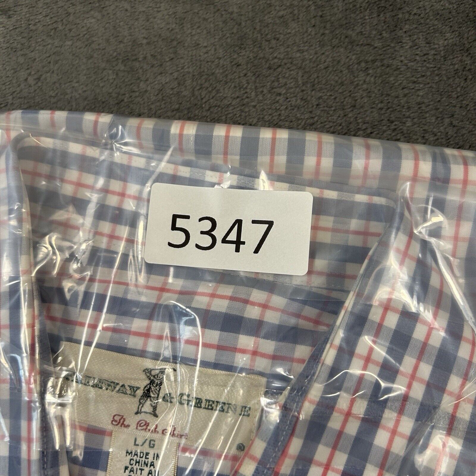 Fairway Greene Shirt Mens Large Blue White Red Check Button Up Long Sleeve Golf