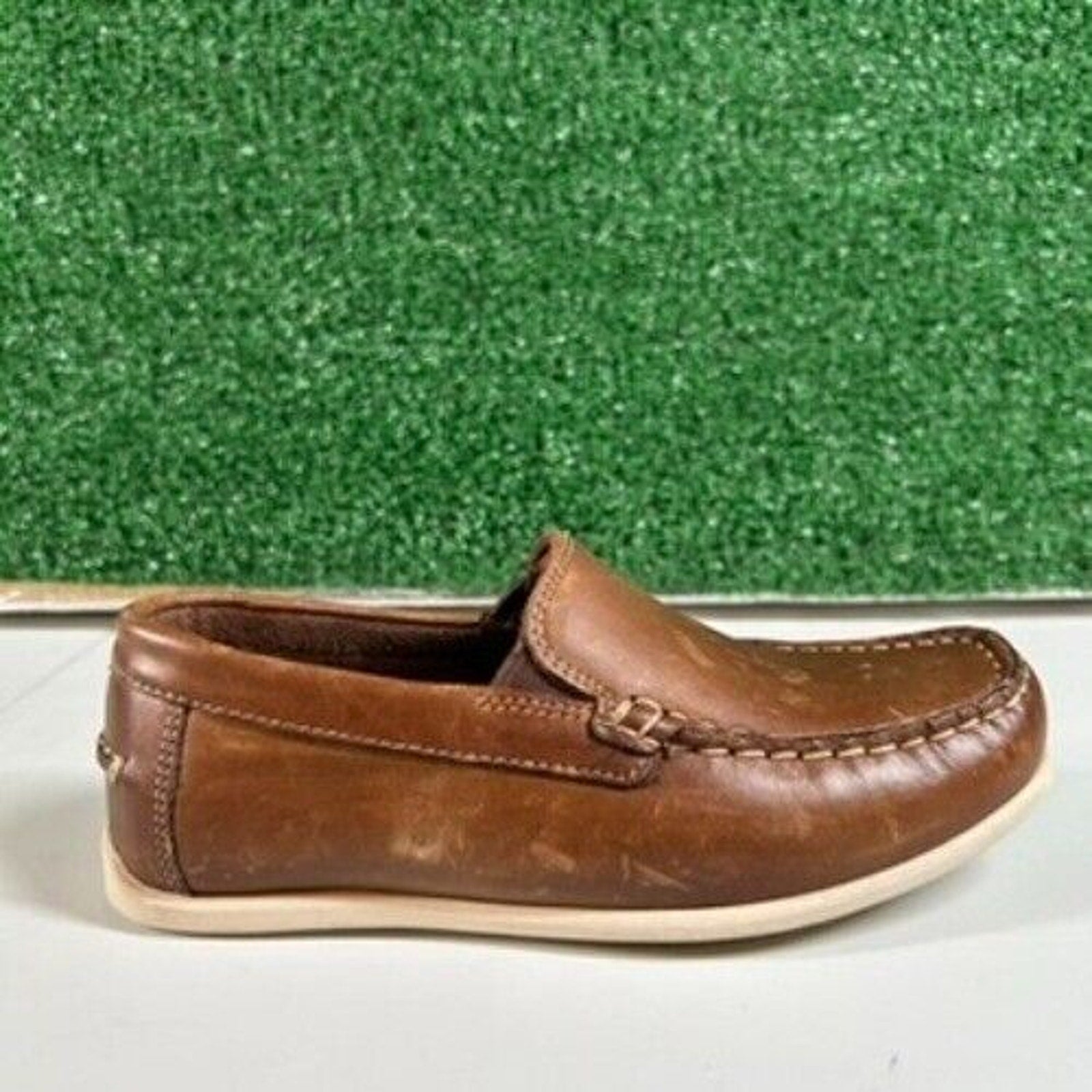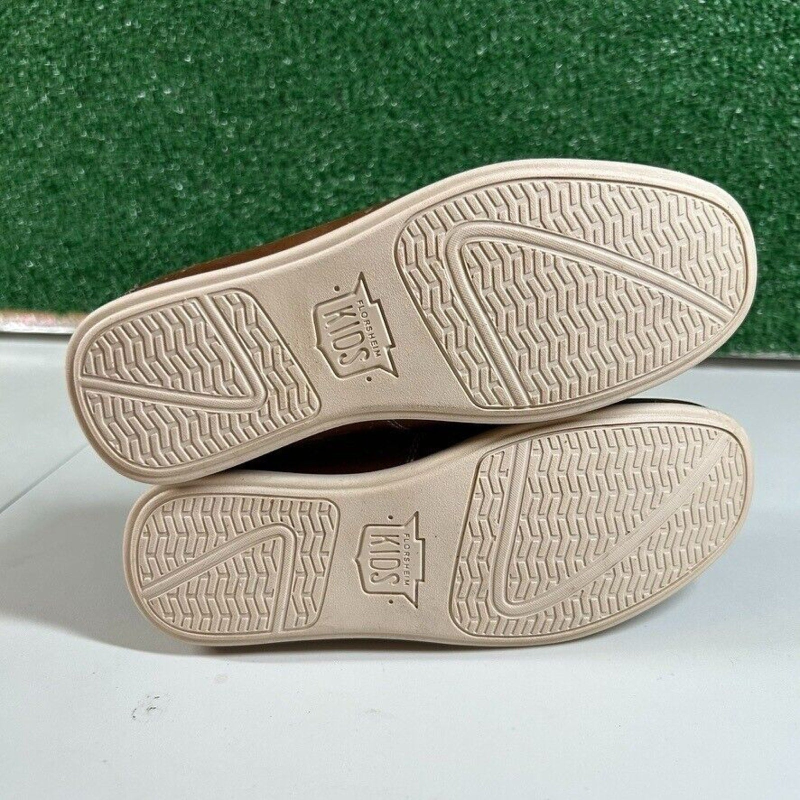 Keywords: Florsheim, kids loafers, brown leather shoes, slip on shoes, dress shoes, casual shoes, boys shoes, size 1, comfort shoes, moc toe, leather loafers, school shoes, childrens shoes, toddler shoes