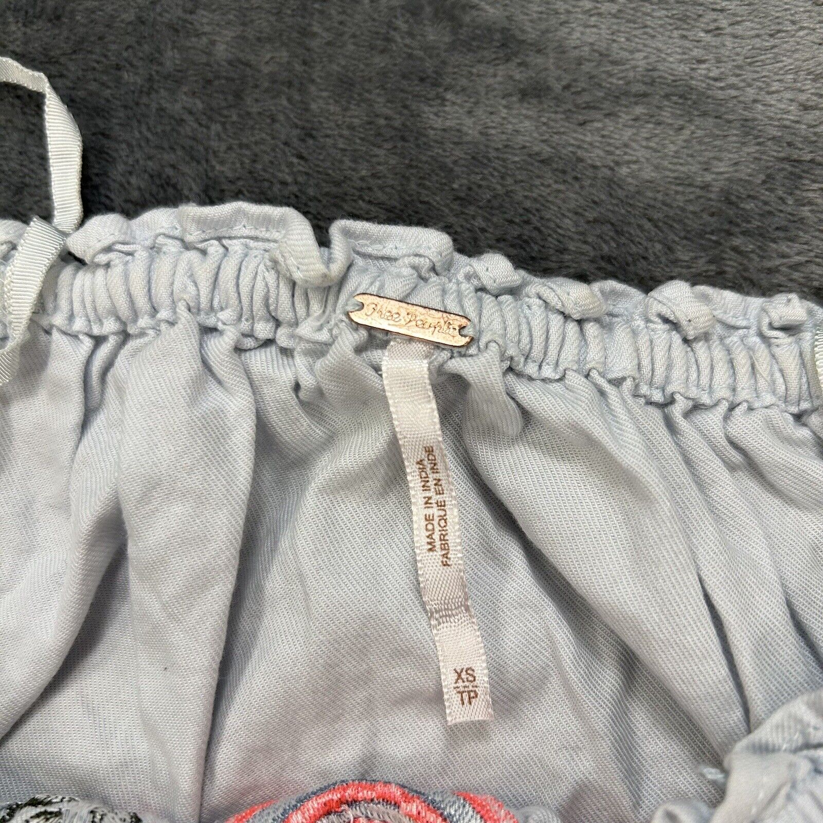 Free People Dress Womens Extra Small Light Blue Fleur Du Jour Embroidered Floral
