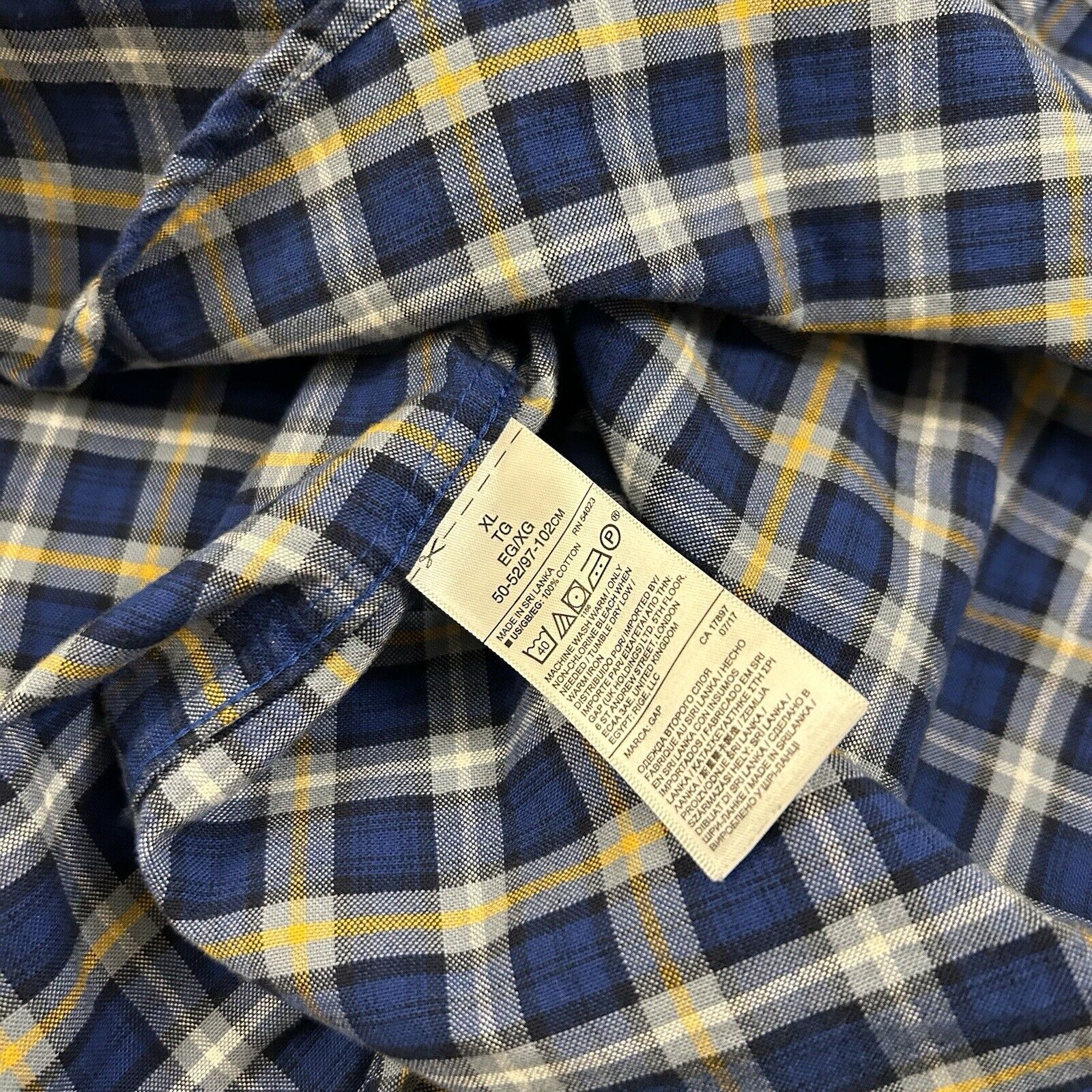 Gap Shirt Mens Extra Large Blue Yellow Plaid Button Up Long Sleeve Work Colorful