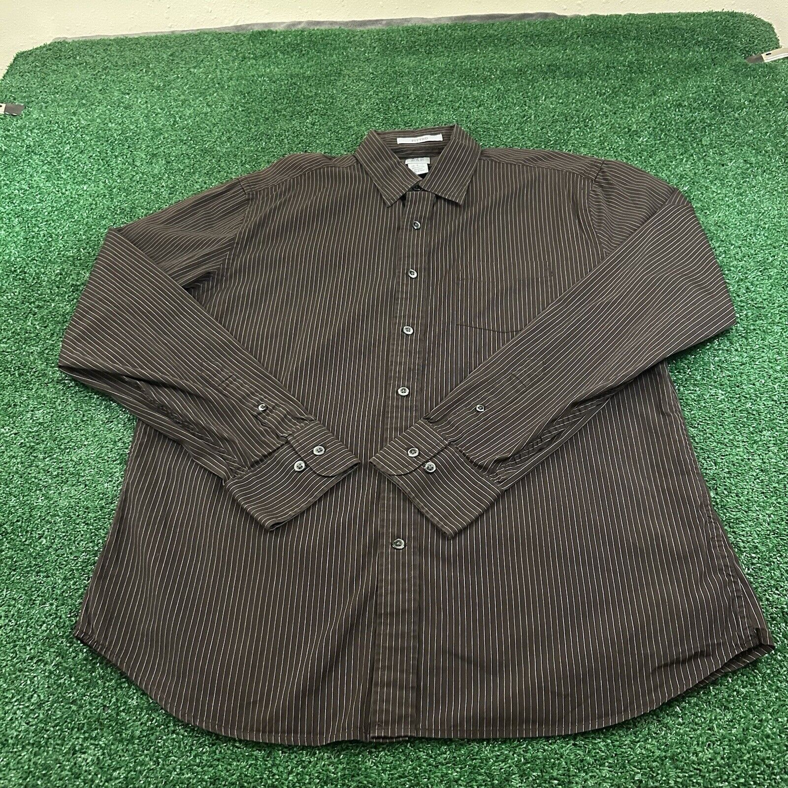 Gap Shirt Mens Large Brown White Striped Fitted Button Up Long Sleeve Casual