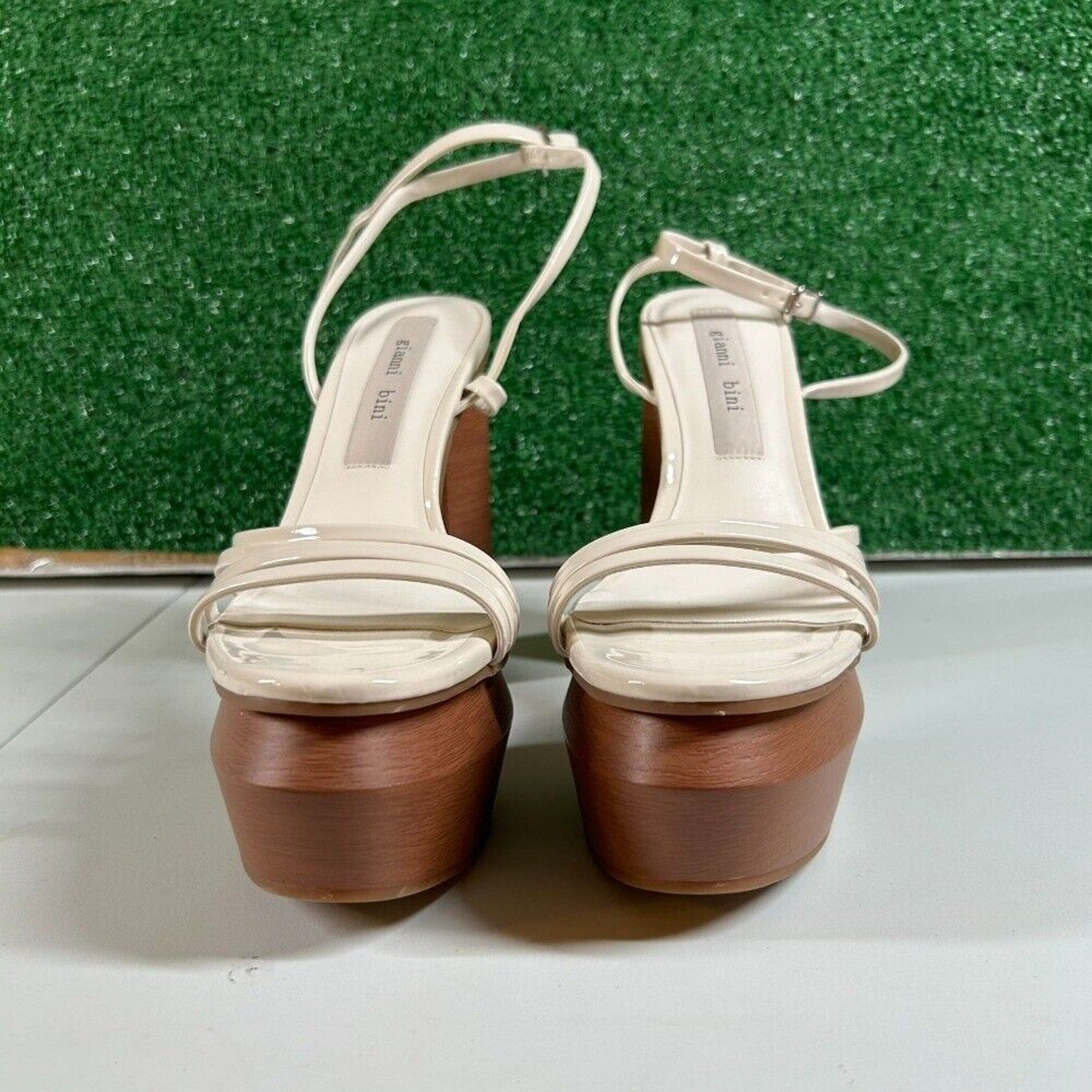 Gianni Bini Parrish Platform Sandals Ankle Strap Wood Block Patent Womens 8.5M