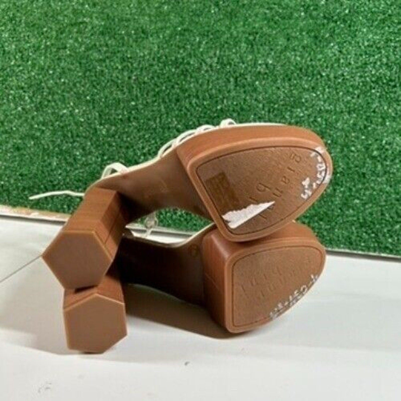 Keywords: Gianni Bini, platform heels, block heel sandals, ankle strap heels, women's shoes, beige heels, brown heels, retro heels, party shoes, dressy sandals, wood heel, platform sandals, high heels, fashion sandals, stylish heels