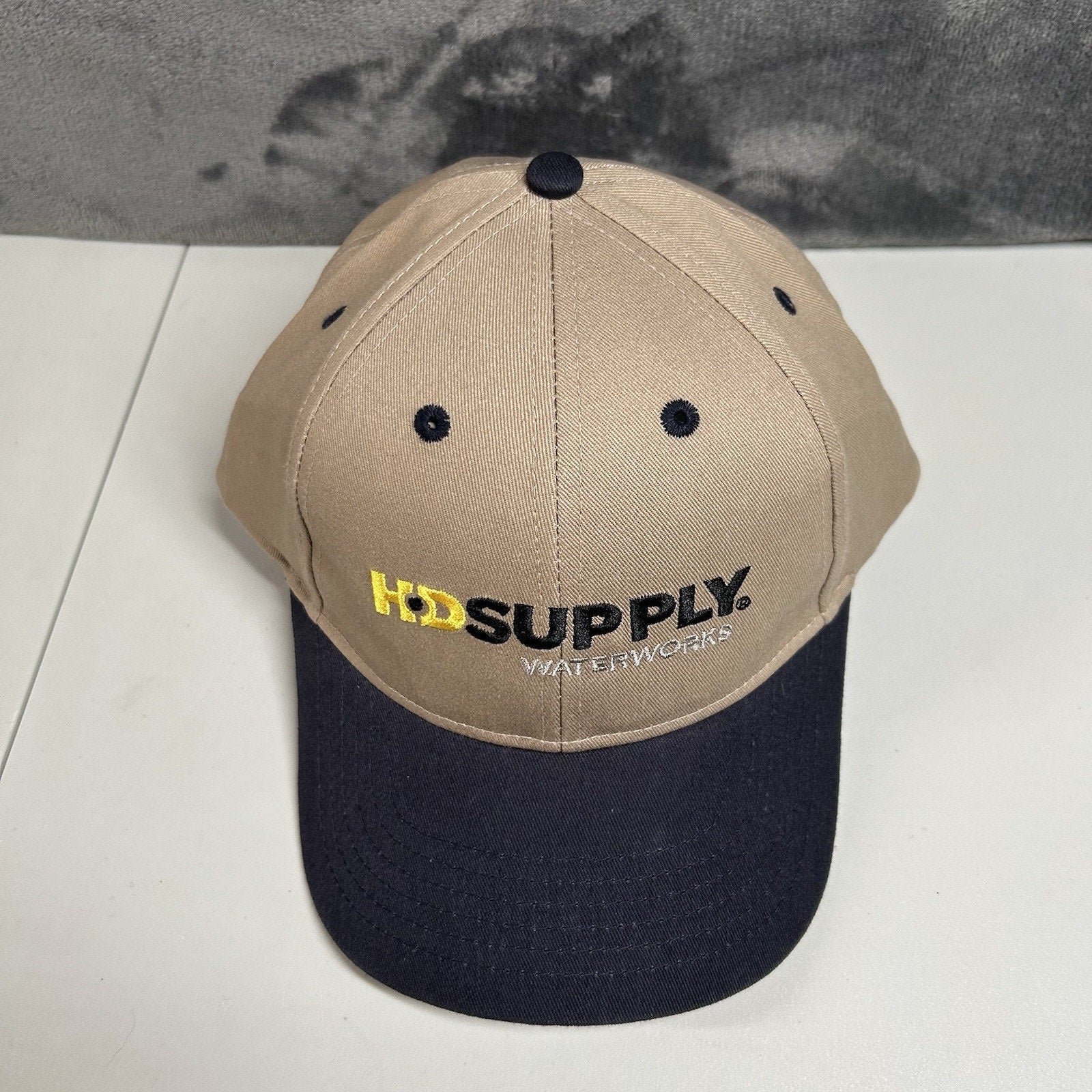 HD Supply Waterworks Baseball Hat Cap Mens Strap Back Tan Navy Adjustable New