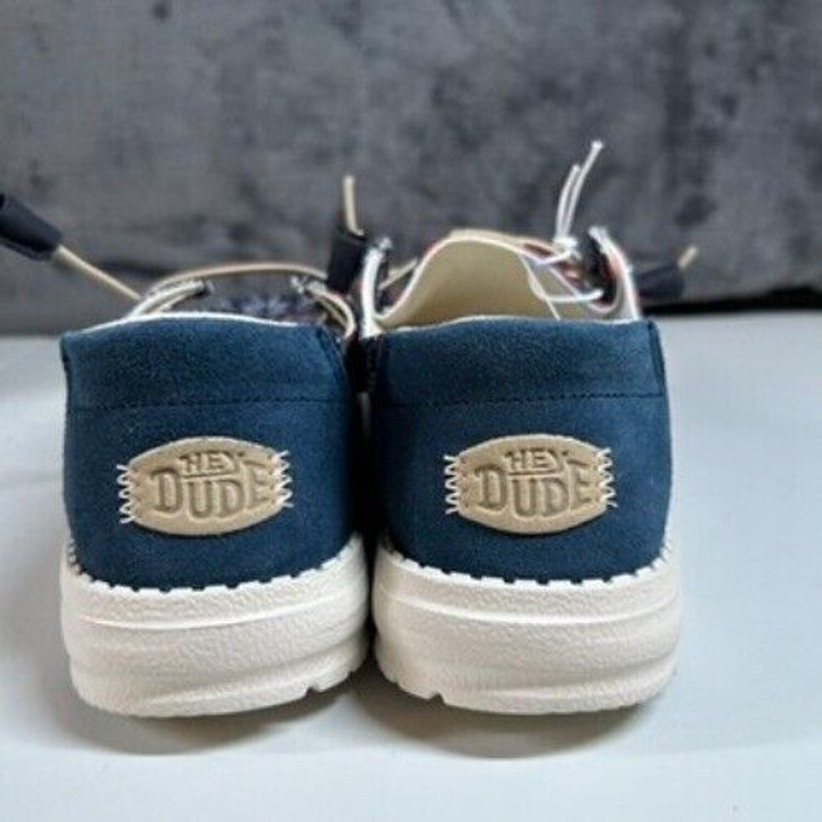 Keywords: Hey Dude, Wendy, Winter Sweater, Slip On, Loafers, Casual Shoes, Comfortable, Fair Isle, Knit Pattern, Women's Shoes, Lightweight, Cushioned, Holiday, Red White Blue, Suede Heel