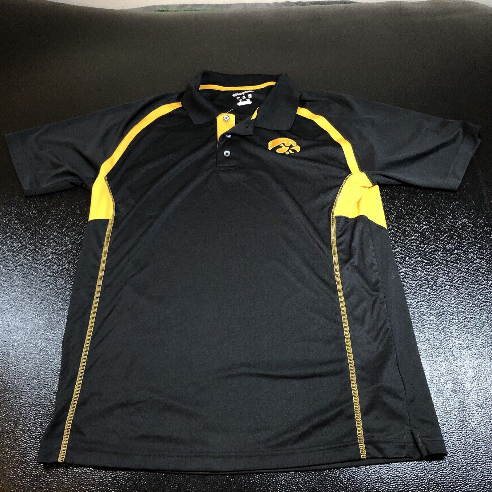 Iowa Hawkeyes Polo Shirt Mens Large Black Yellow Short Sleeve Champion Elite