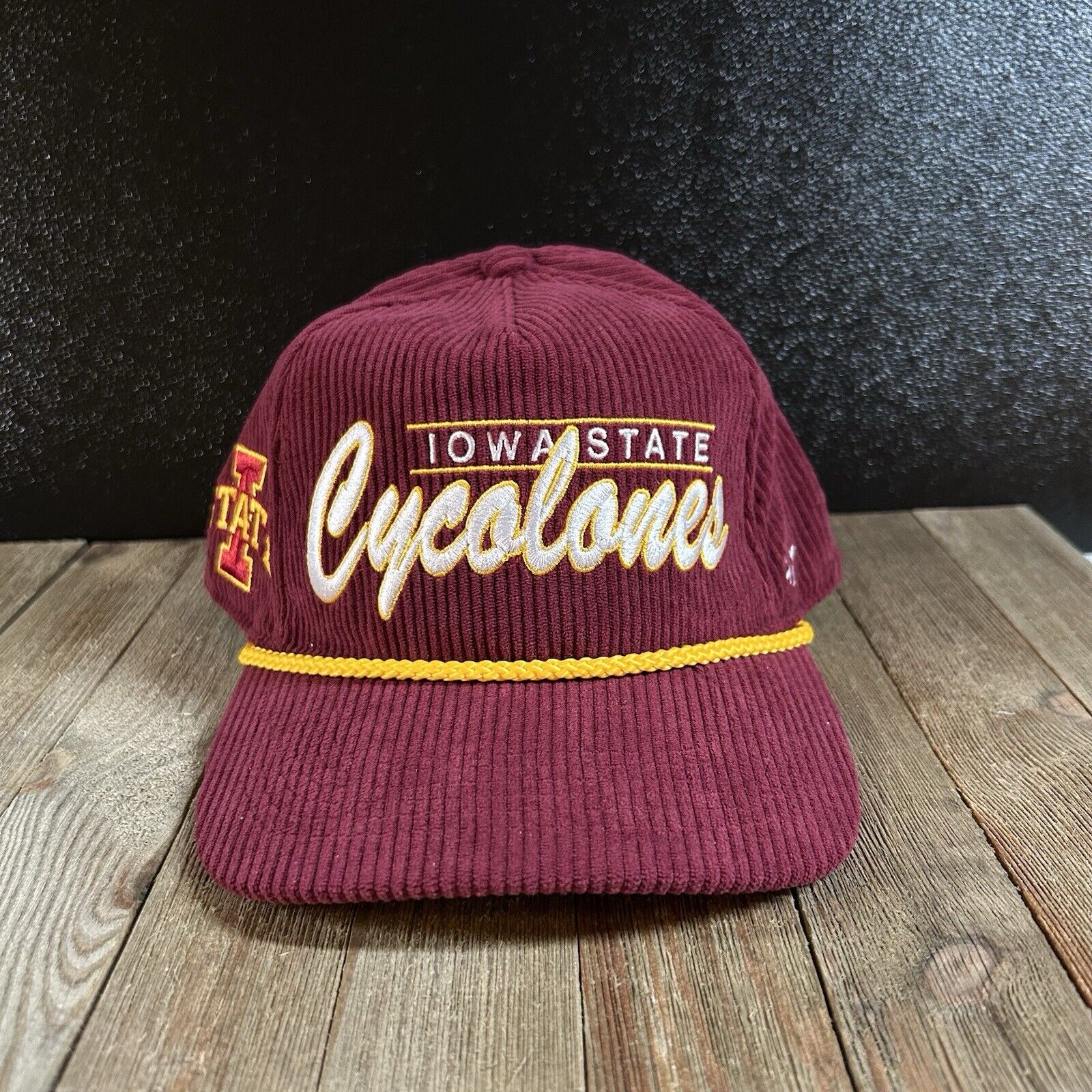 Iowa State Cyclones Hitch Hat Cap Mens Maroon Corduroy Rope Snapback '47 Y2K NEW