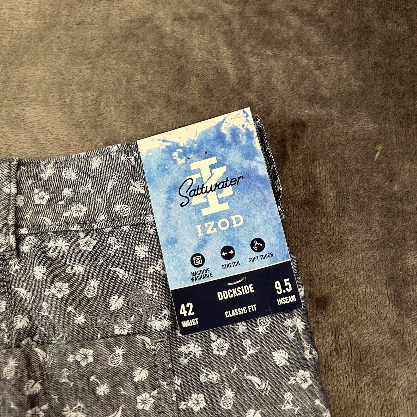 Izod Saltwater Shorts Men 42" Blue Dockside Classic Fit Pineapples Palm Tree NEW