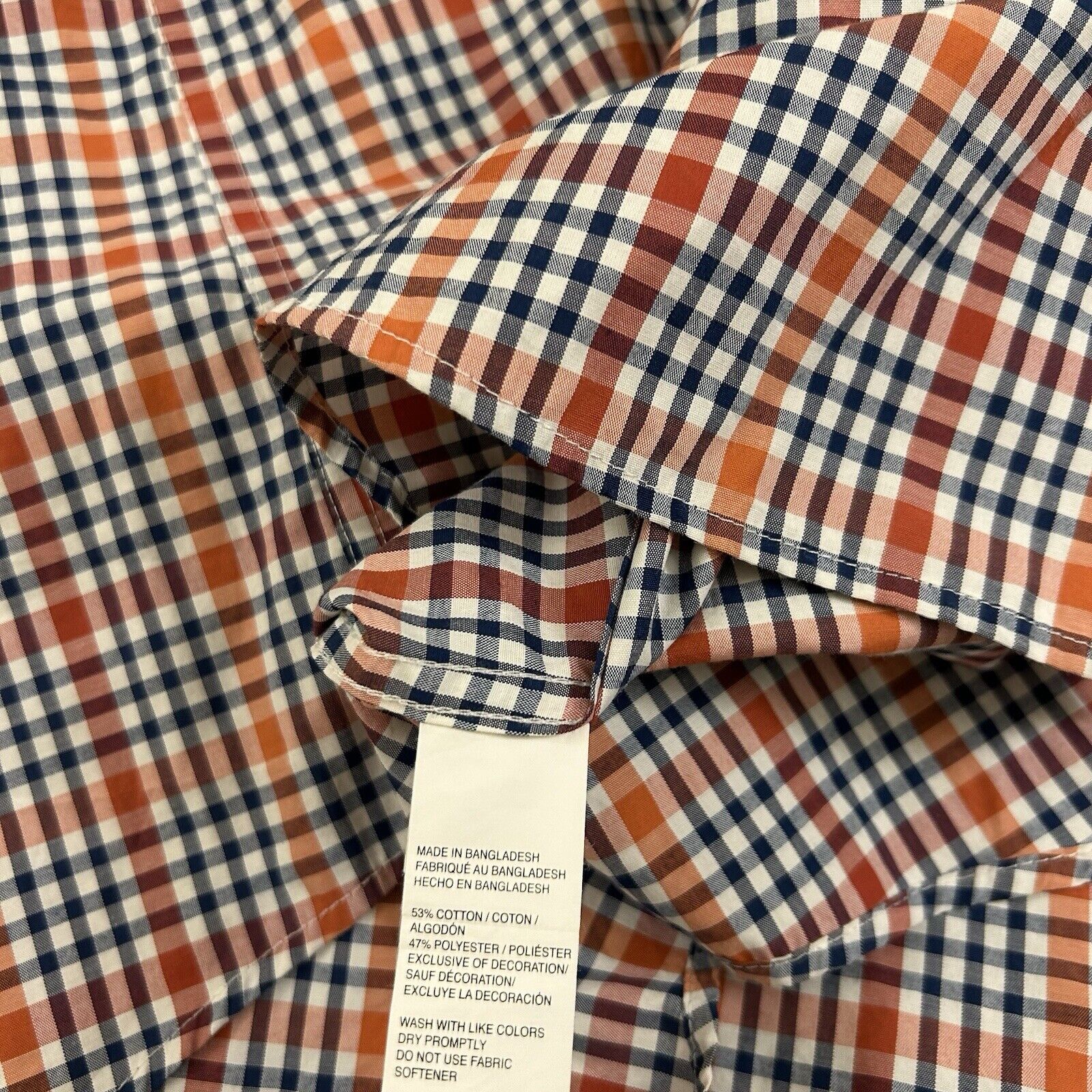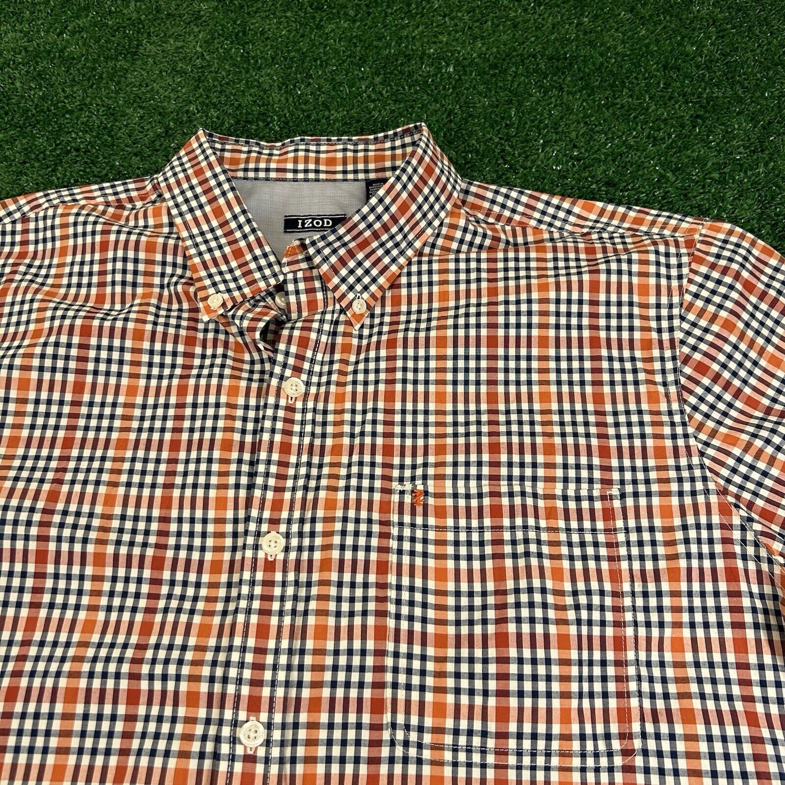 Izod Shirt Mens Extra Large Orange Blue Check Button Up Short Sleeve Colorful