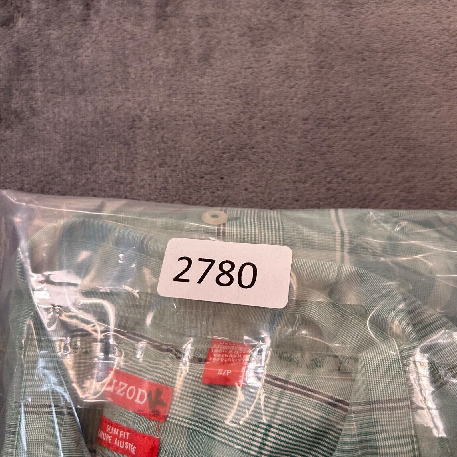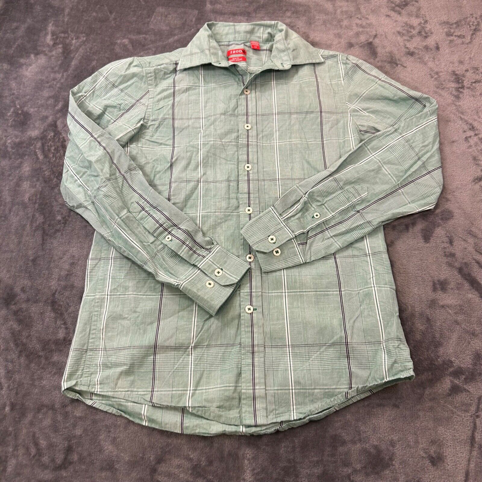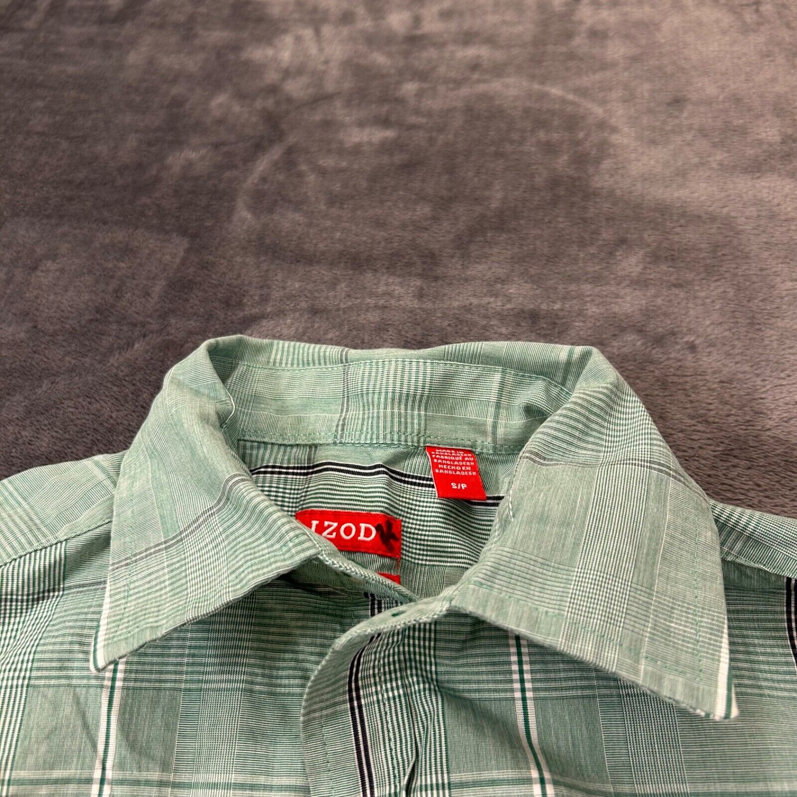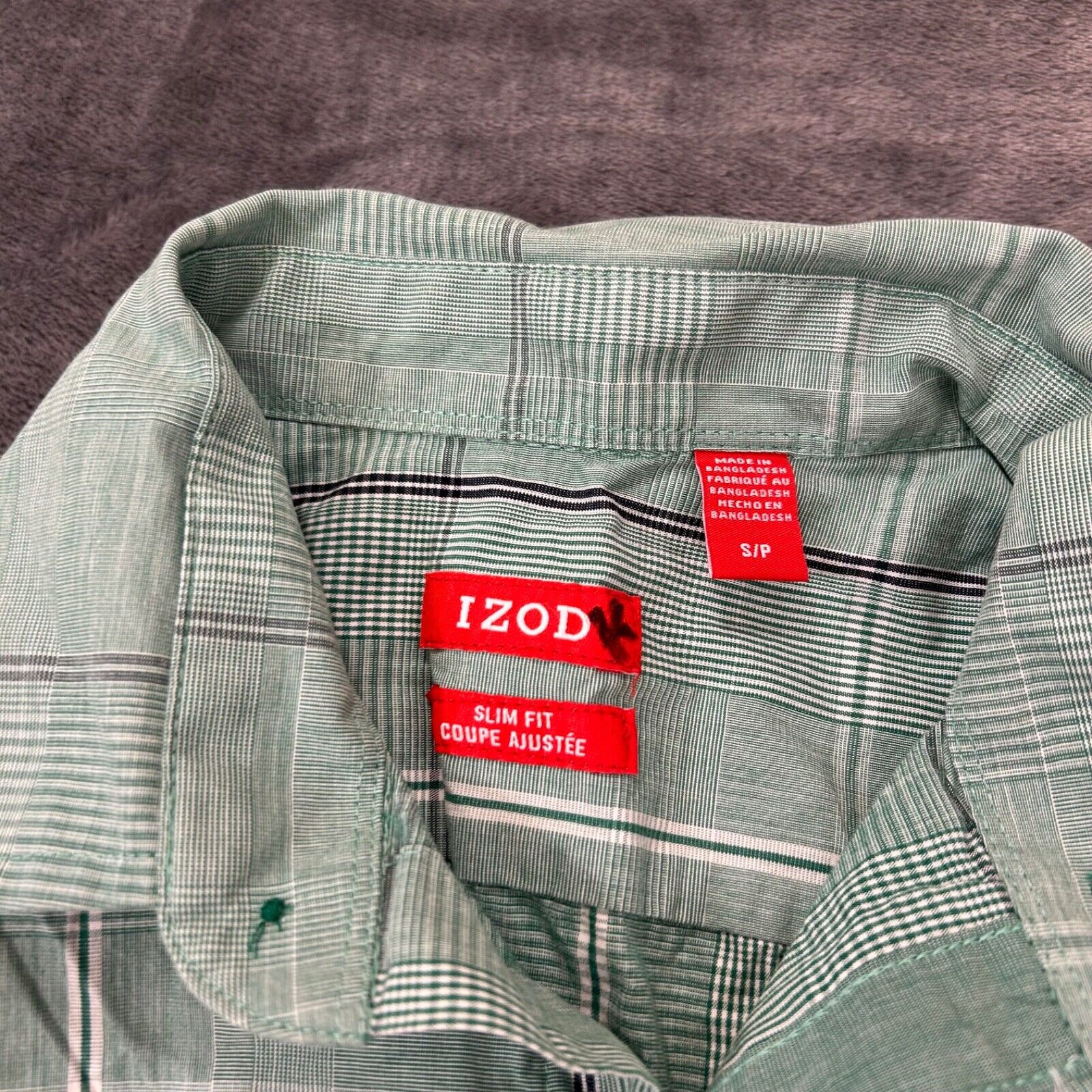 Izod Shirt Mens Small Green Black Plaid Button Up Long Sleeve Work Slim Fit
