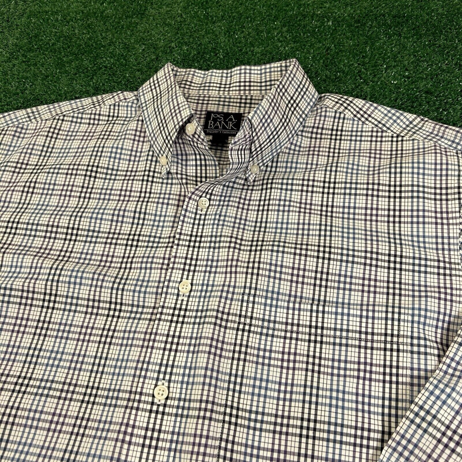 Jos A Bank Shirt Mens Large Blue White Check Button Up Long Sleeve Colorful Work