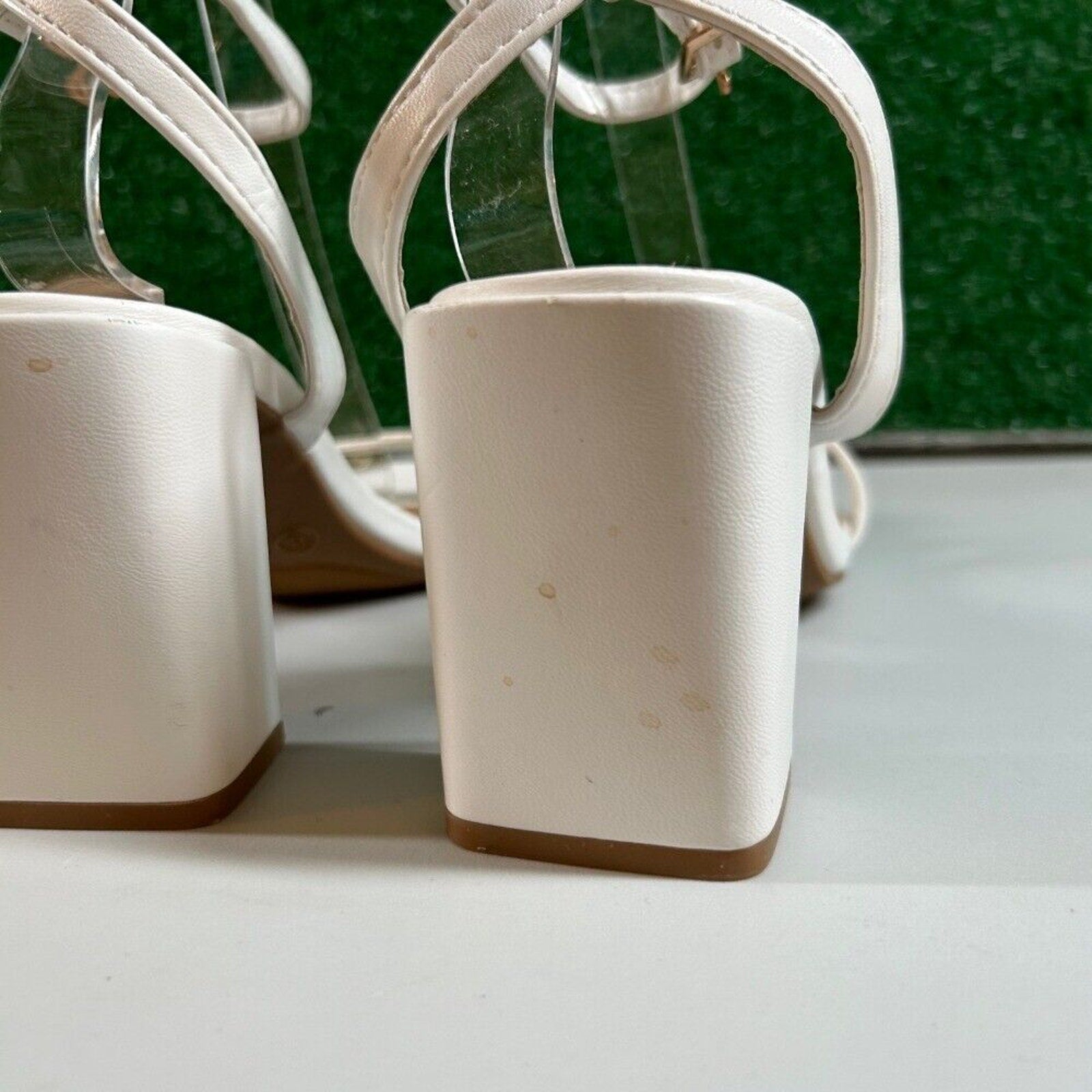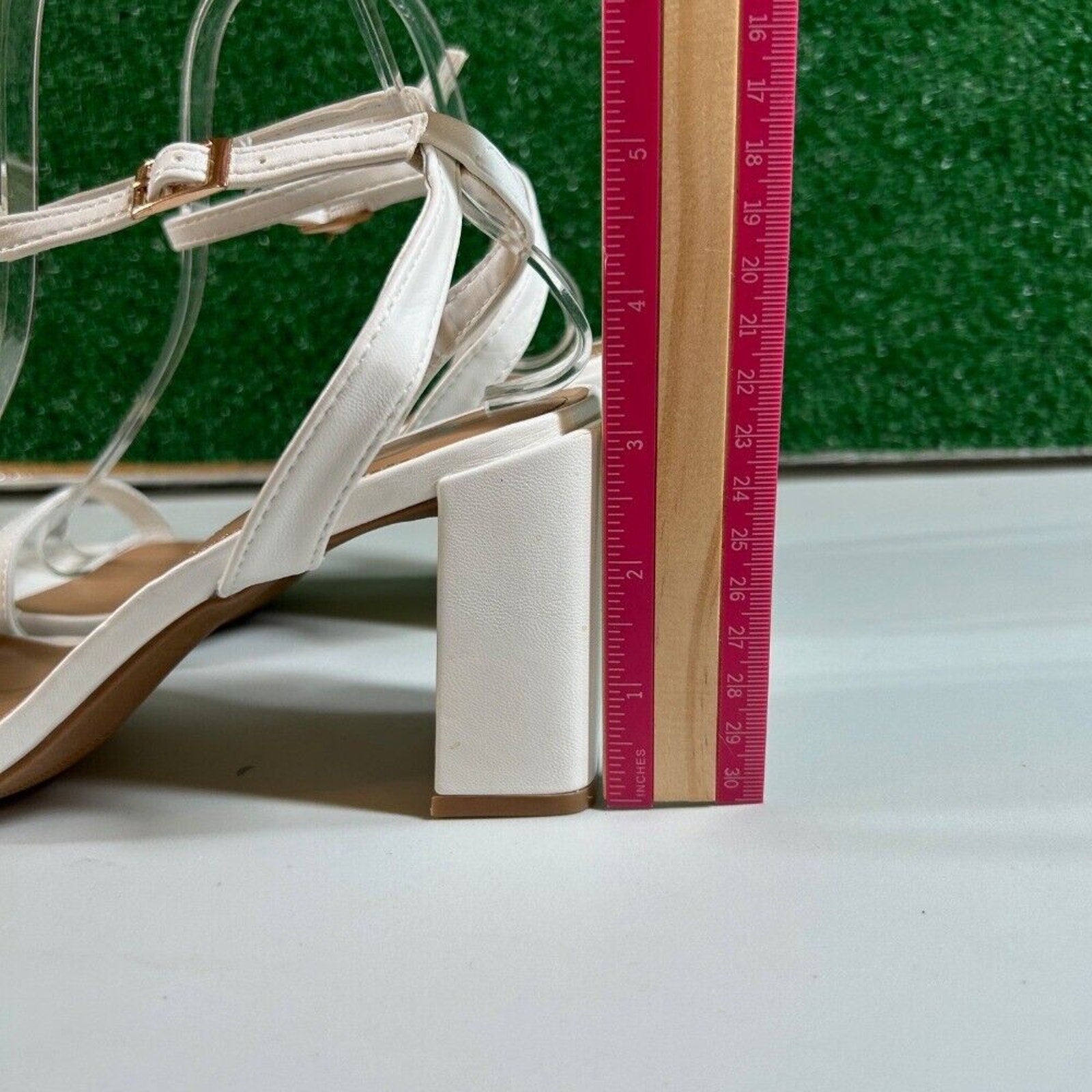 Journee Collection White Sandals Block Heel Ankle Strap Square Toe Womens 8