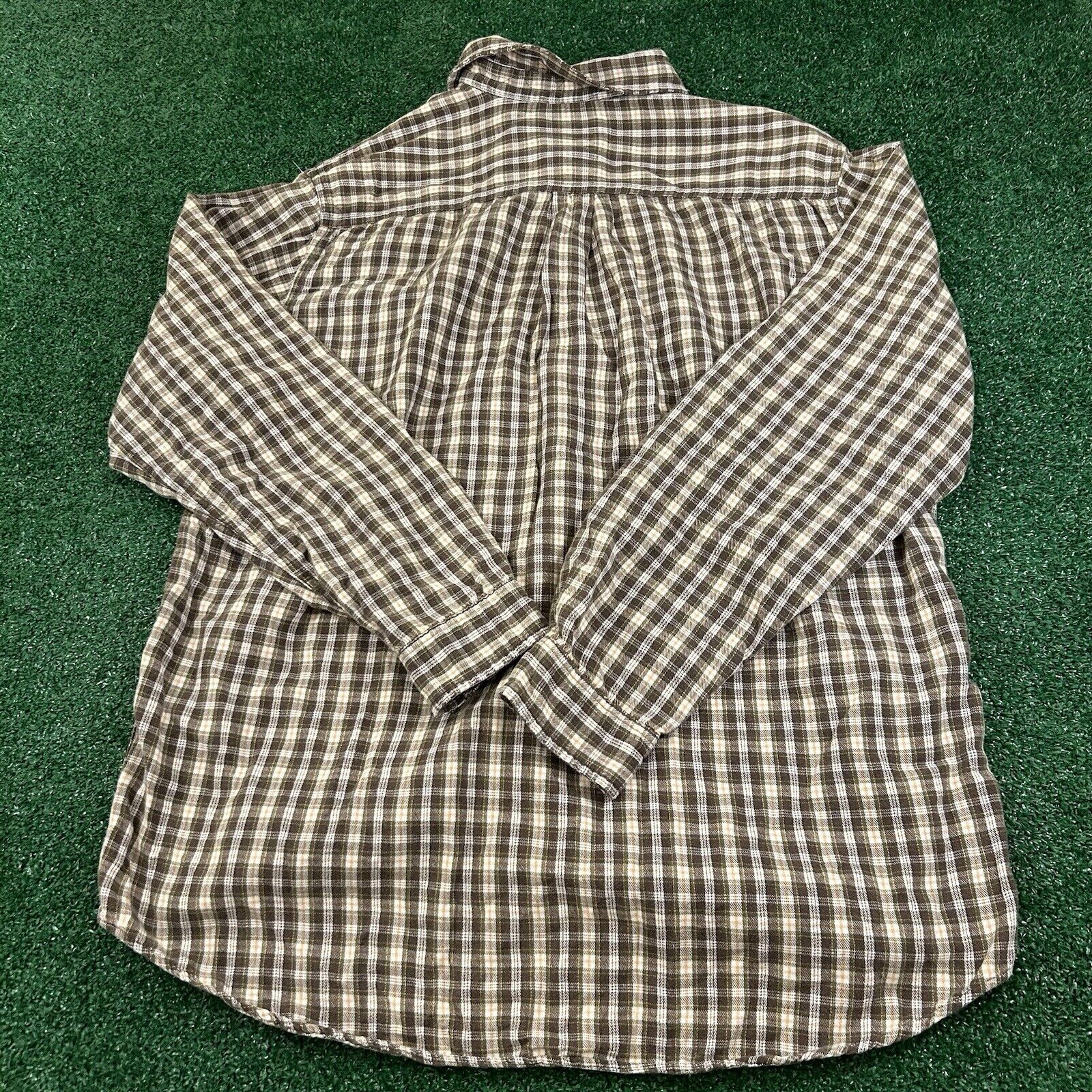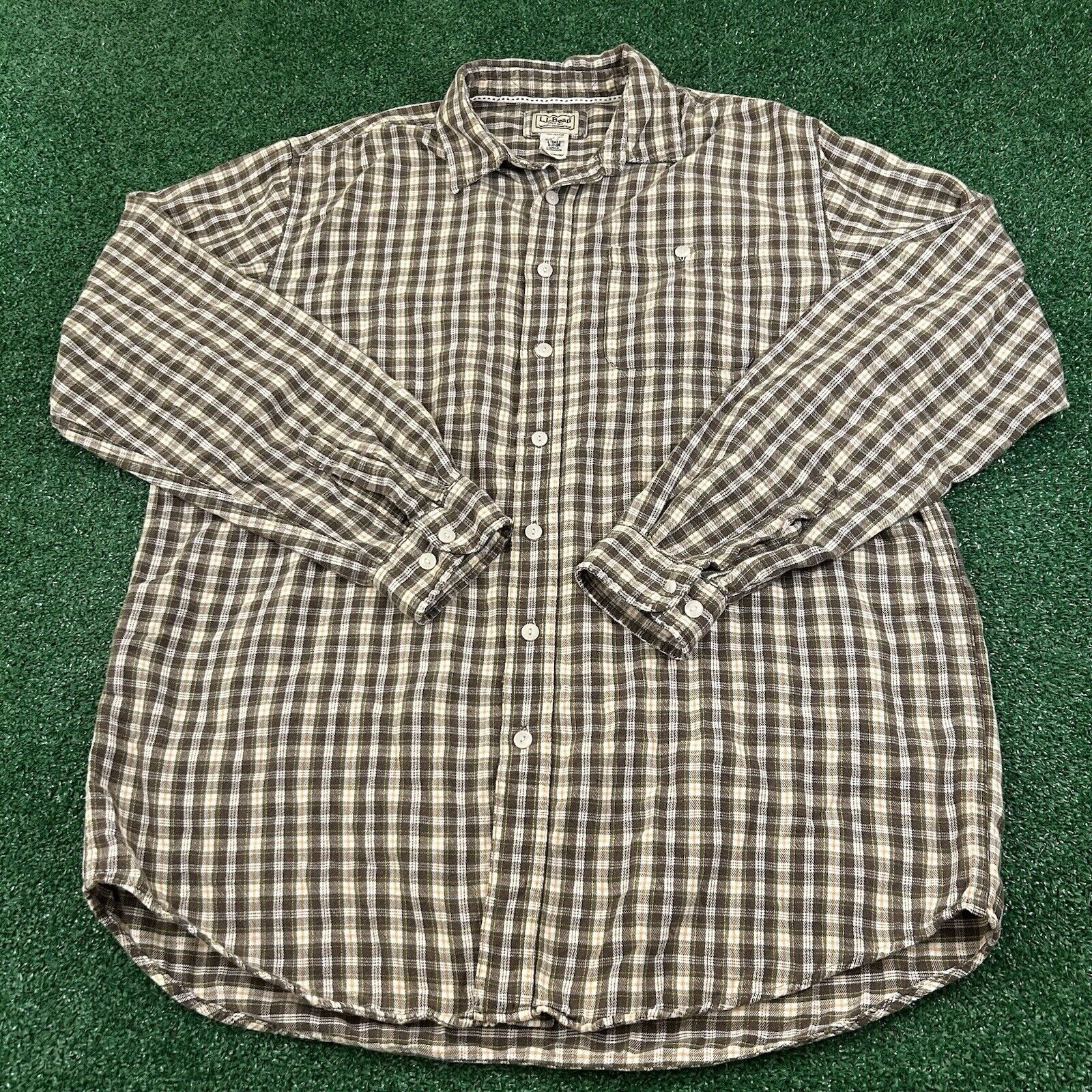 LL Bean Flannel Shirt Men Large Tall Brown Green Plaid Button Up Long Sleeve