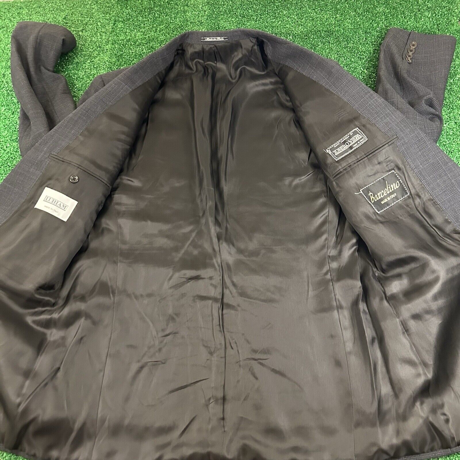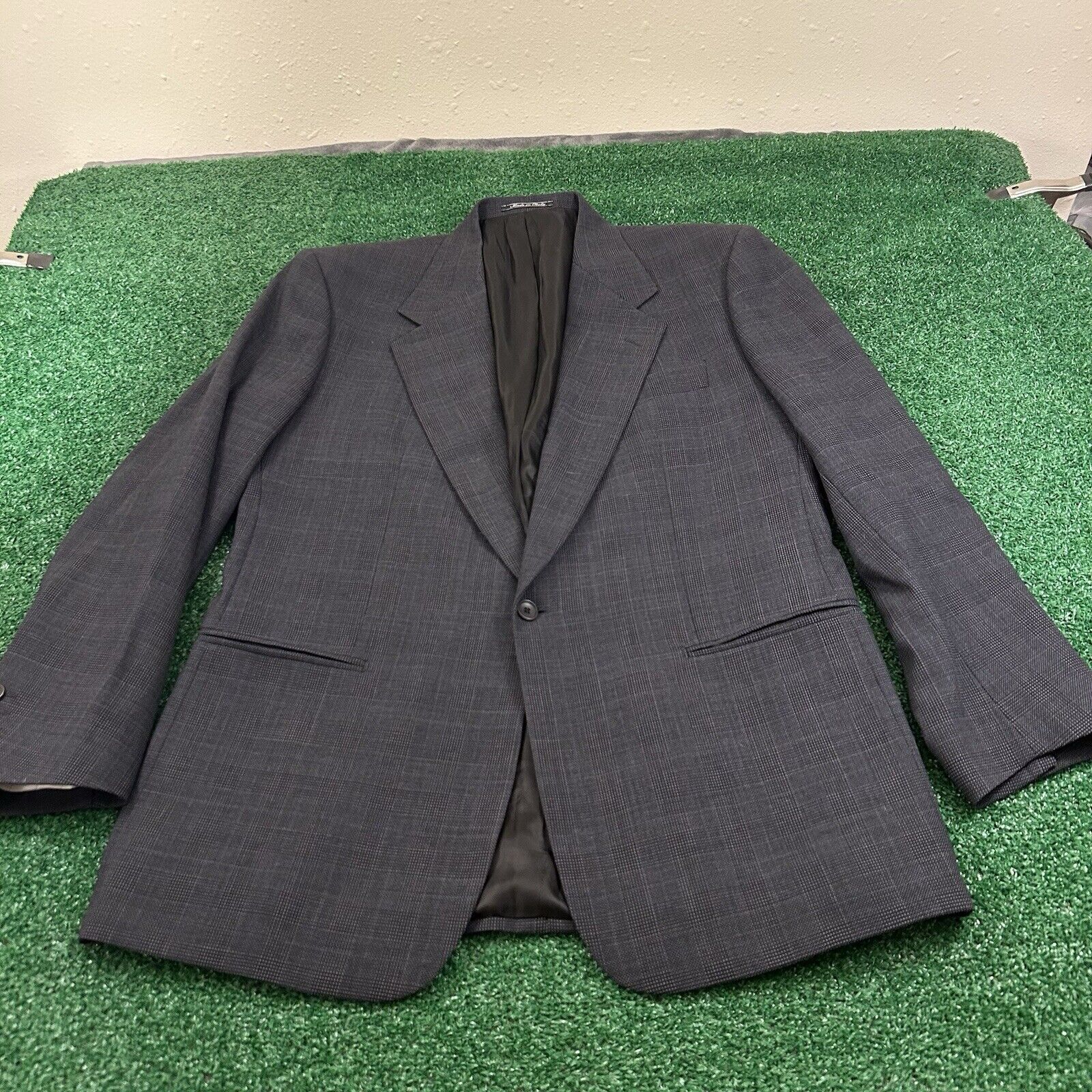 Lubiam Blazer Jacket Mens 43 Black Gray Wool Made Italy Sport Coat Work Formal