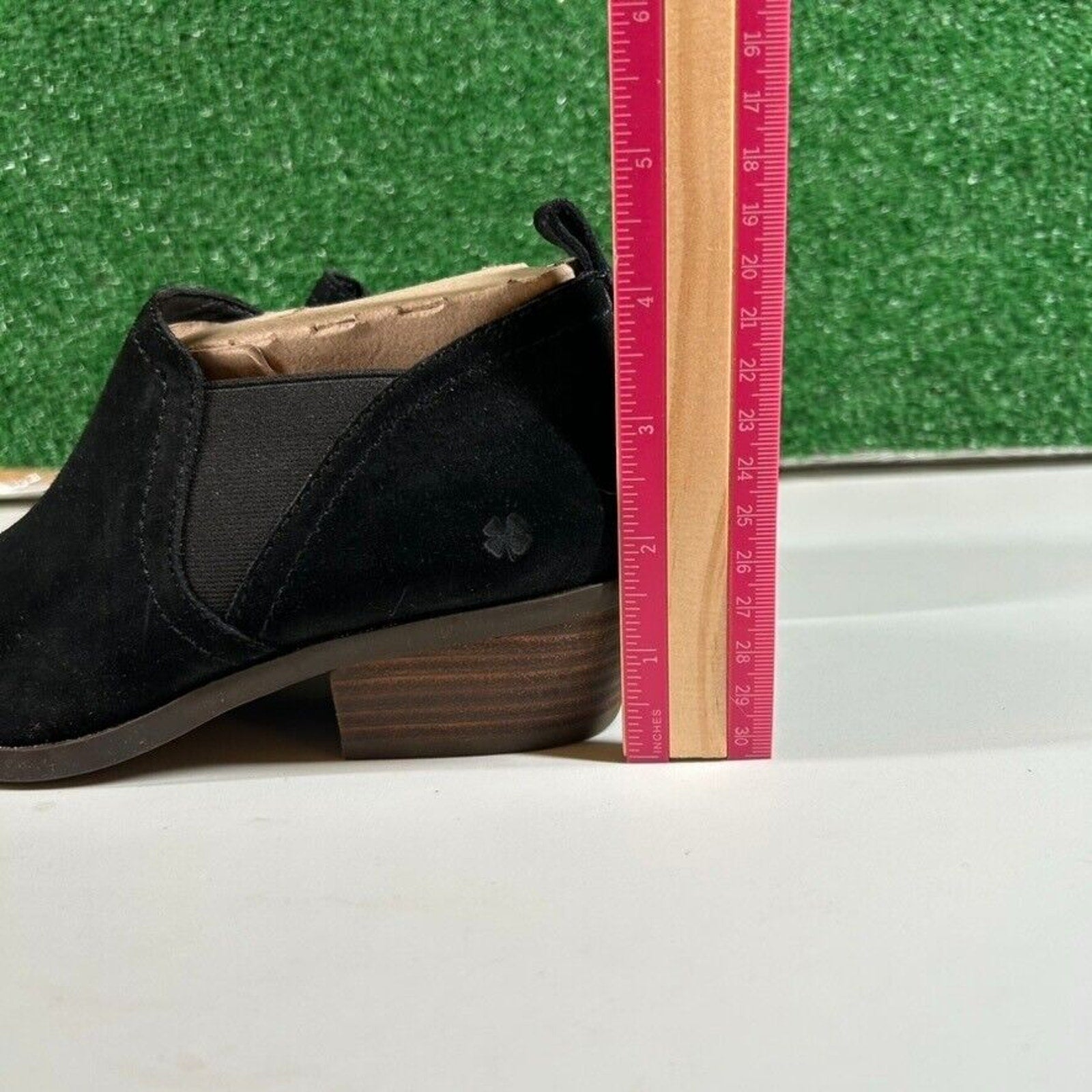Keywords: Lucky Brand, ankle booties, black suede boots, heeled booties, women's boots, suede ankle boots, block heel, casual boots, dress boots, comfort shoes, fall fashion, winter boots, leather booties