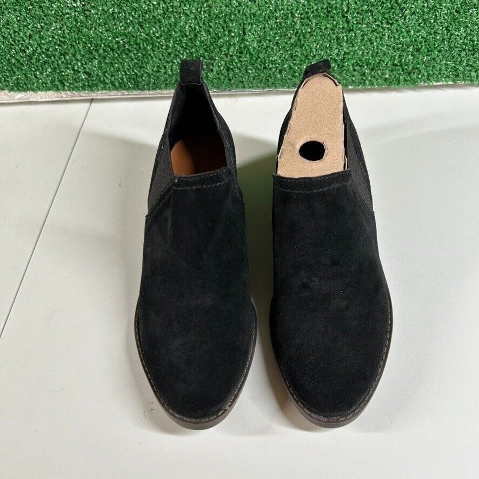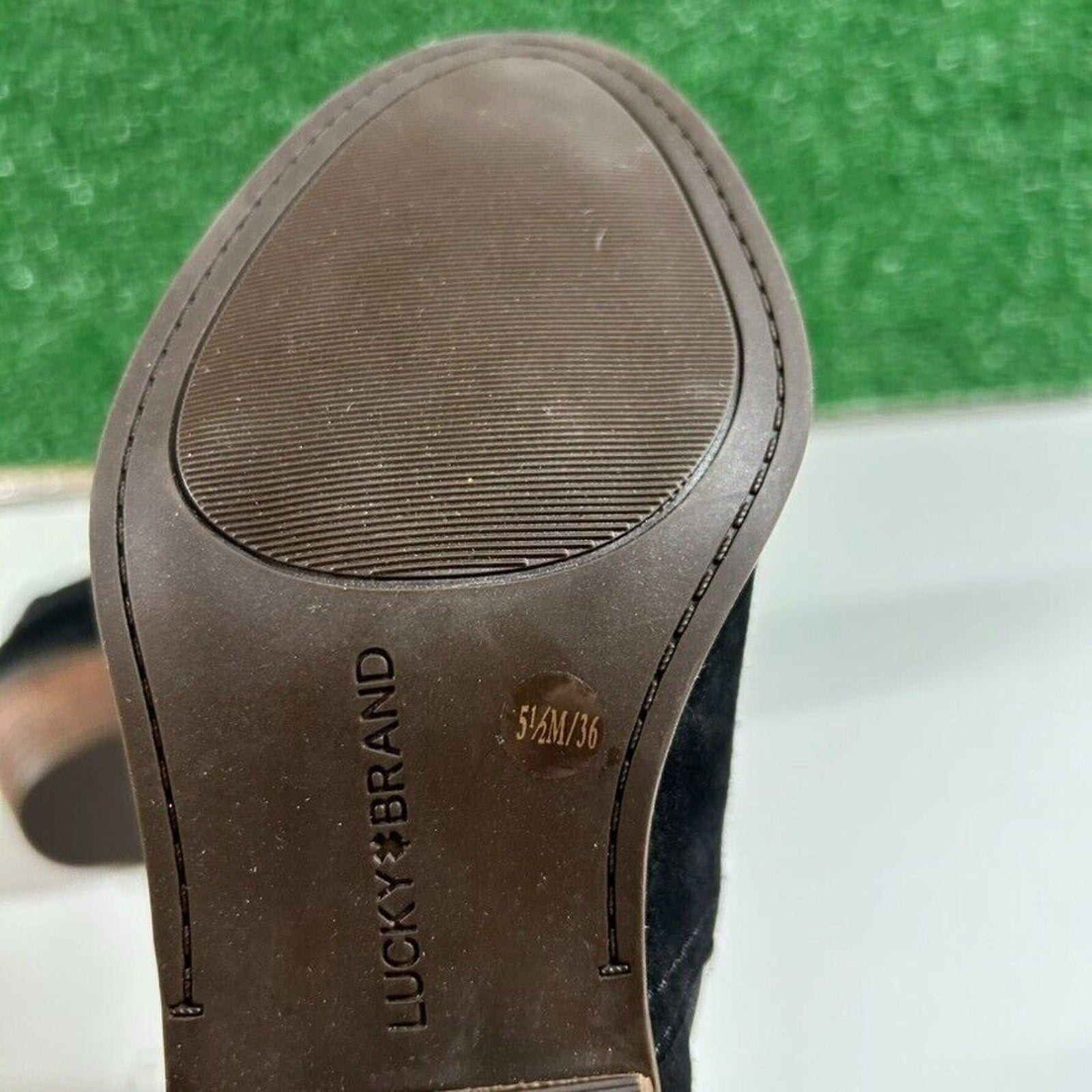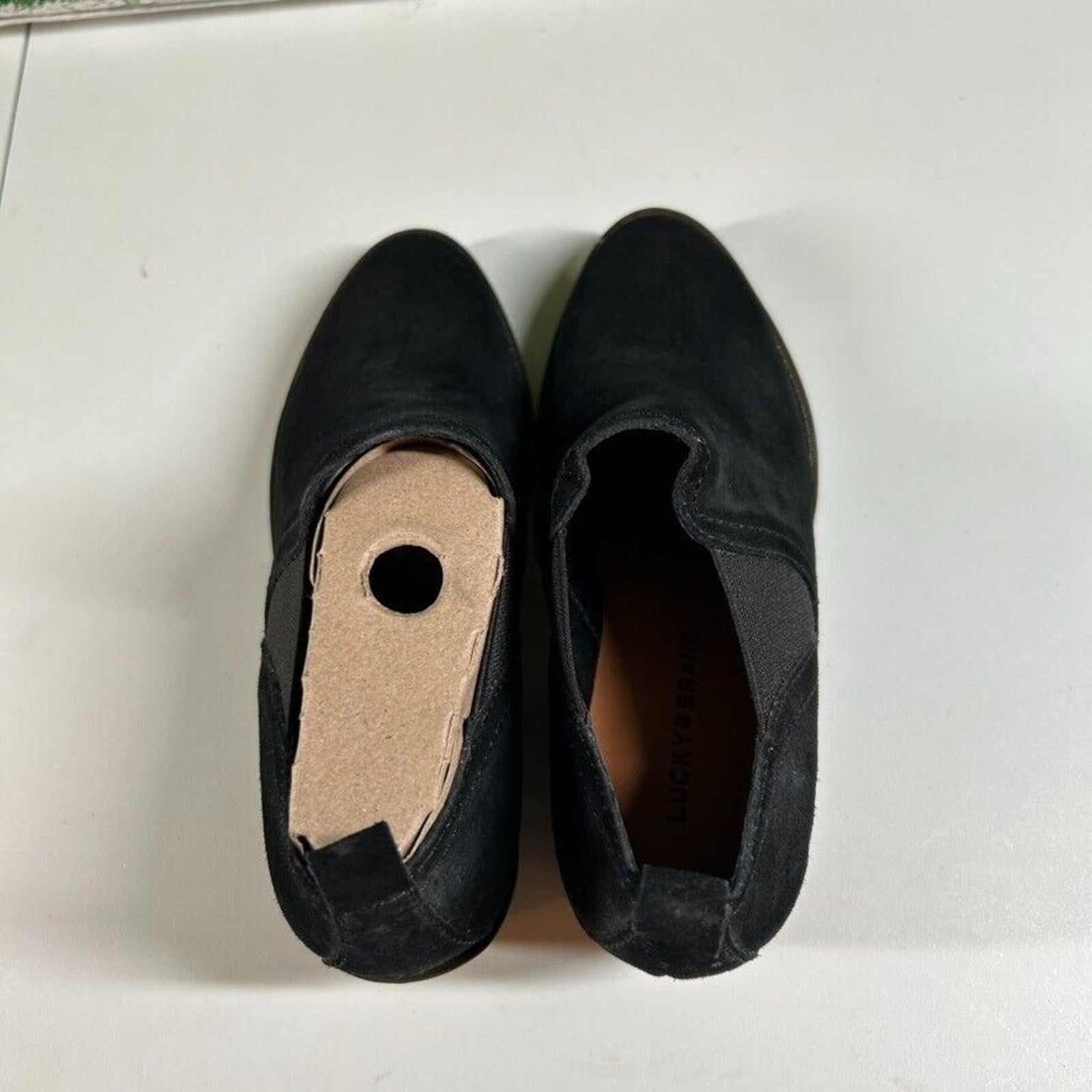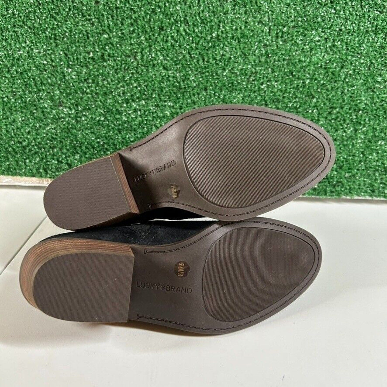 Lucky Brand Fallo Boots Black Suede Leather Ankle Booties Heeled Womens 5.5 M