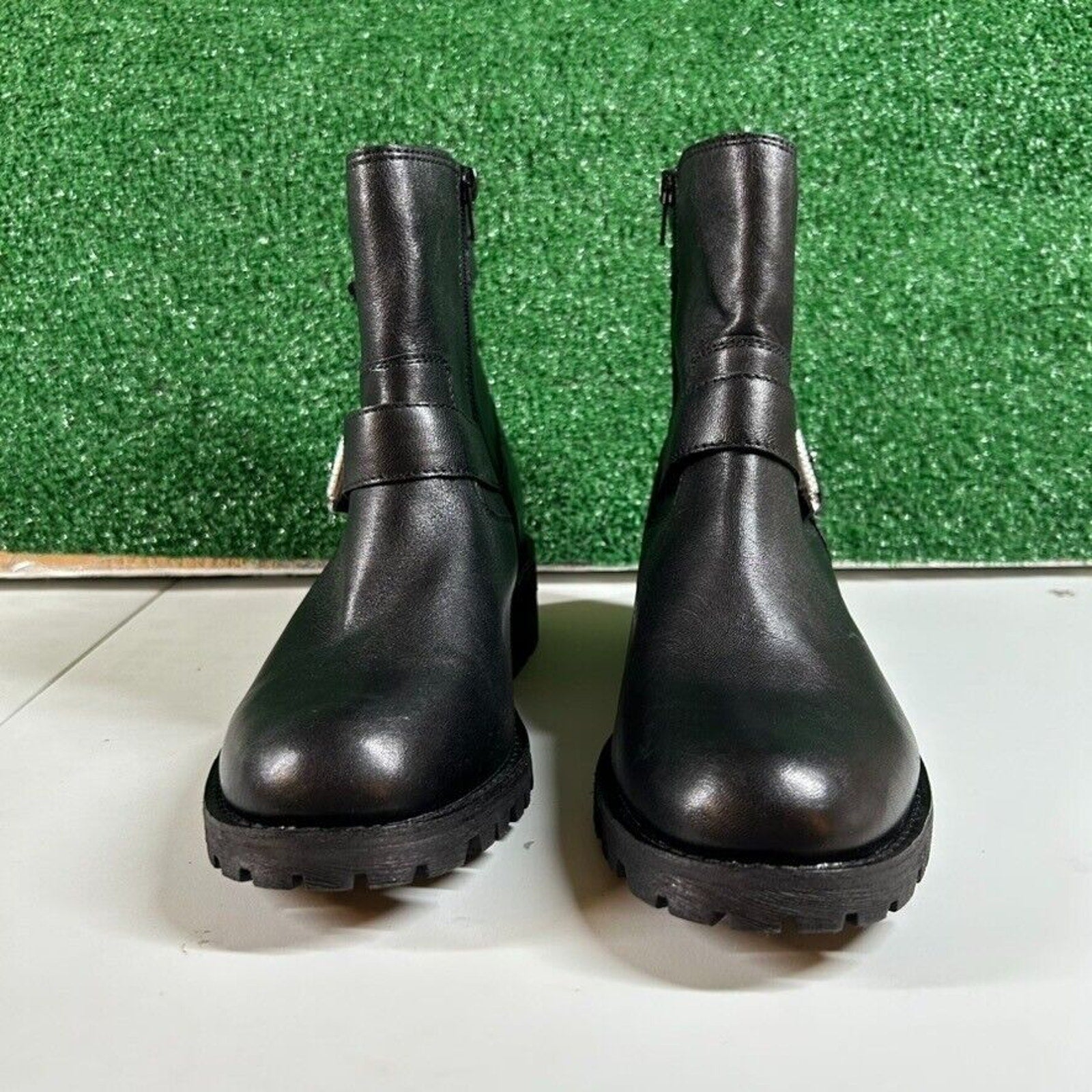 Keywords: moto boots, ankle boots, black boots, leather boots, buckle boots, side zip boots, lug sole boots, block heel boots, women's boots, booties, casual boots, fashion boots, stylish boots, edgy boots, black ankle boots