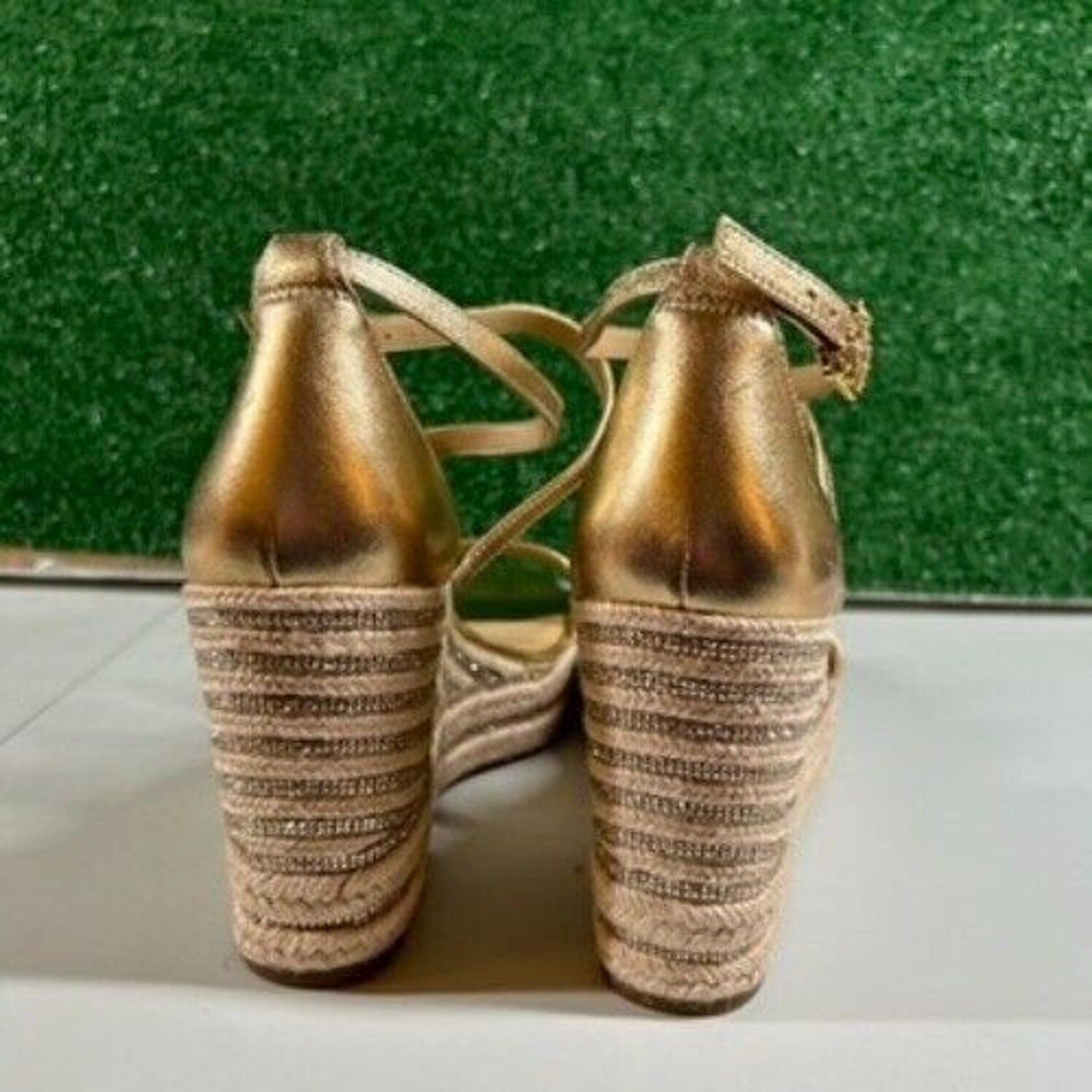 Keywords: Michael Kors, wedge sandals, espadrille, platform shoes, gold sandals, ankle strap, women's shoes, summer shoes, dress sandals, party shoes, metallic sandals, gold wedges, designer sandals, casual wedges