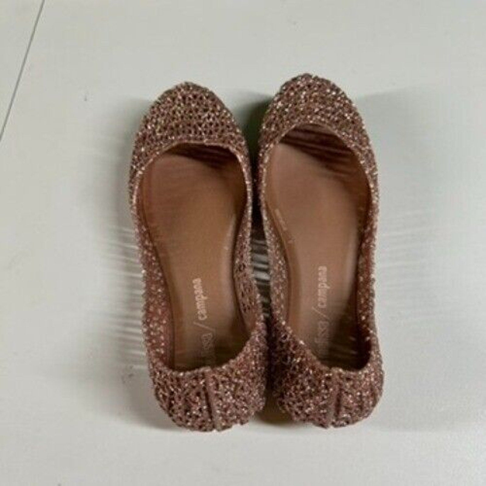 Mini Melissa Campana Glitter Ballet Flats Sparkle Shoes Rose Gold Kids Size 3Y