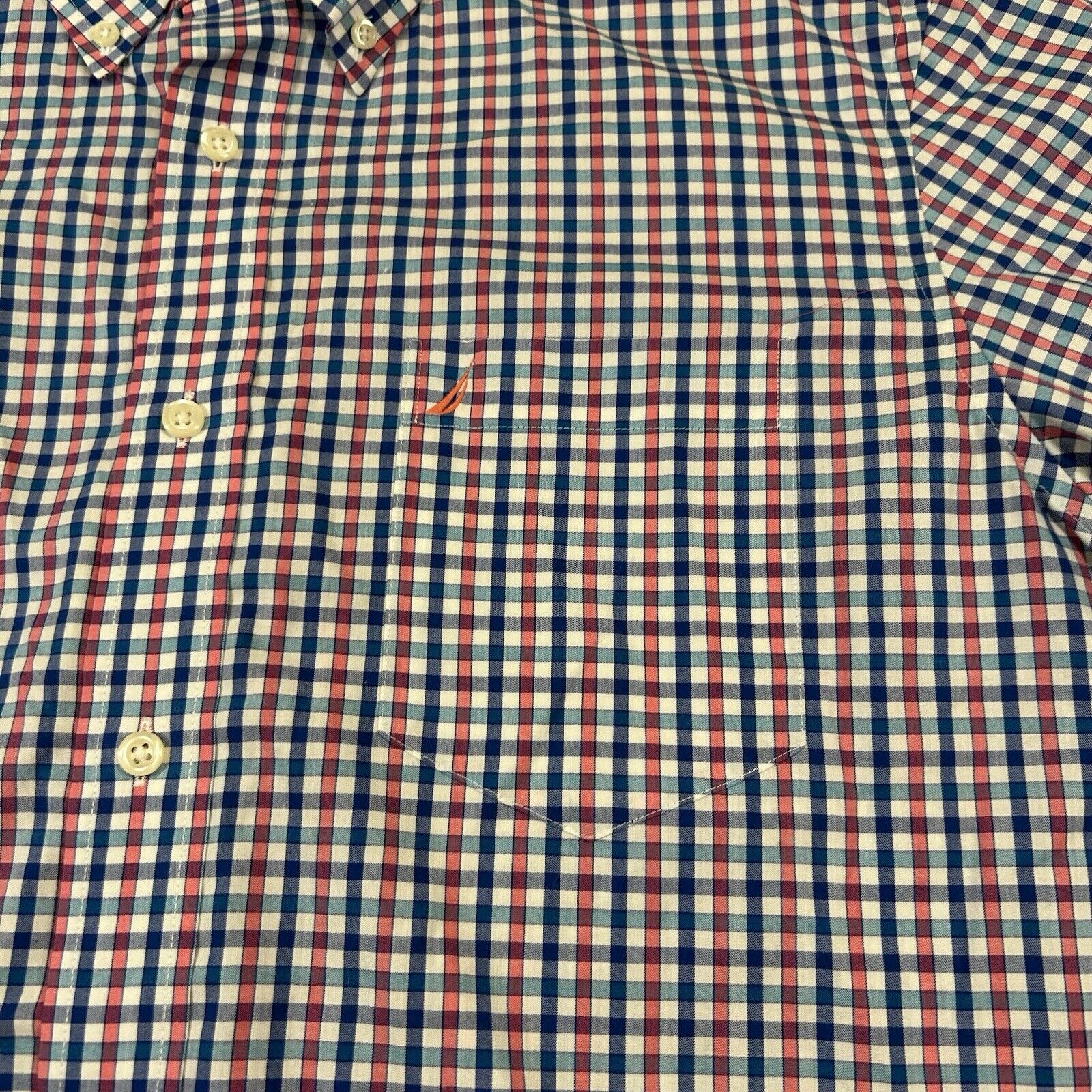 Nautica Shirt Mens Large Pink Blue White Check Button Up Short Sleeve Colorful