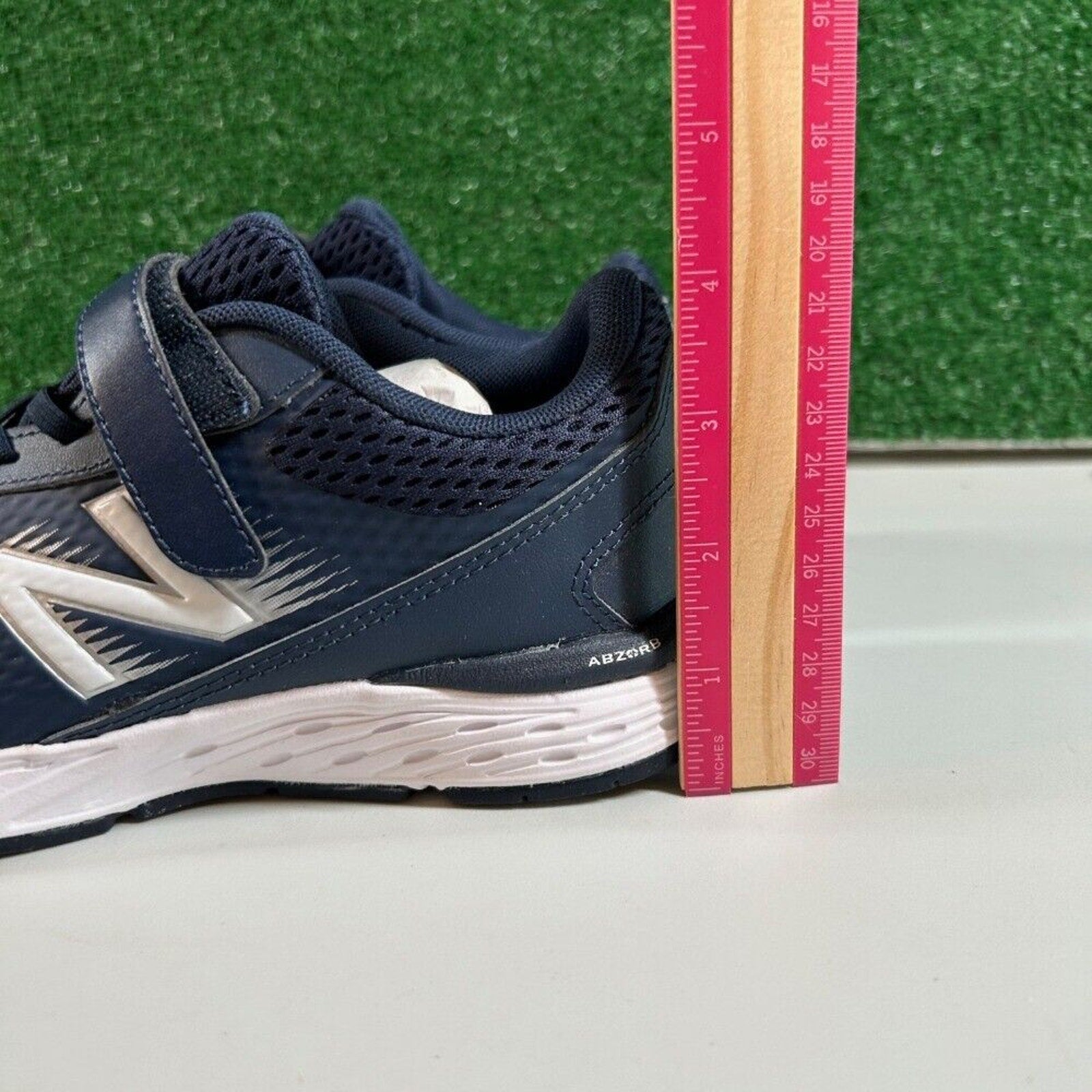 Keywords: New Balance, kids sneakers, running shoes, athletic shoes, hook and loop, navy blue, ABZORB, mesh upper, comfortable shoes, boys shoes, girls shoes, school shoes, playground shoes, childrens shoes