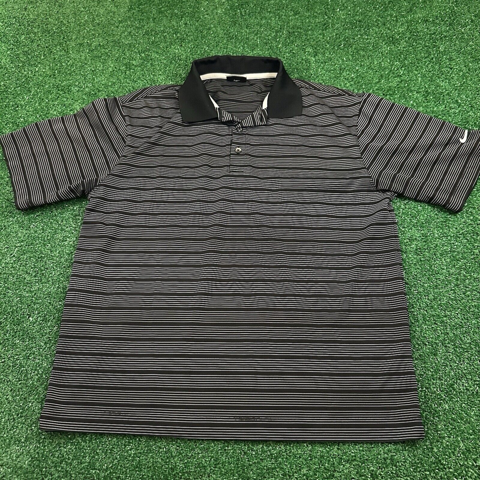 Nike Golf Polo Shirt Mens Medium Black White Striped Short Sleeve Dri-fit Preppy