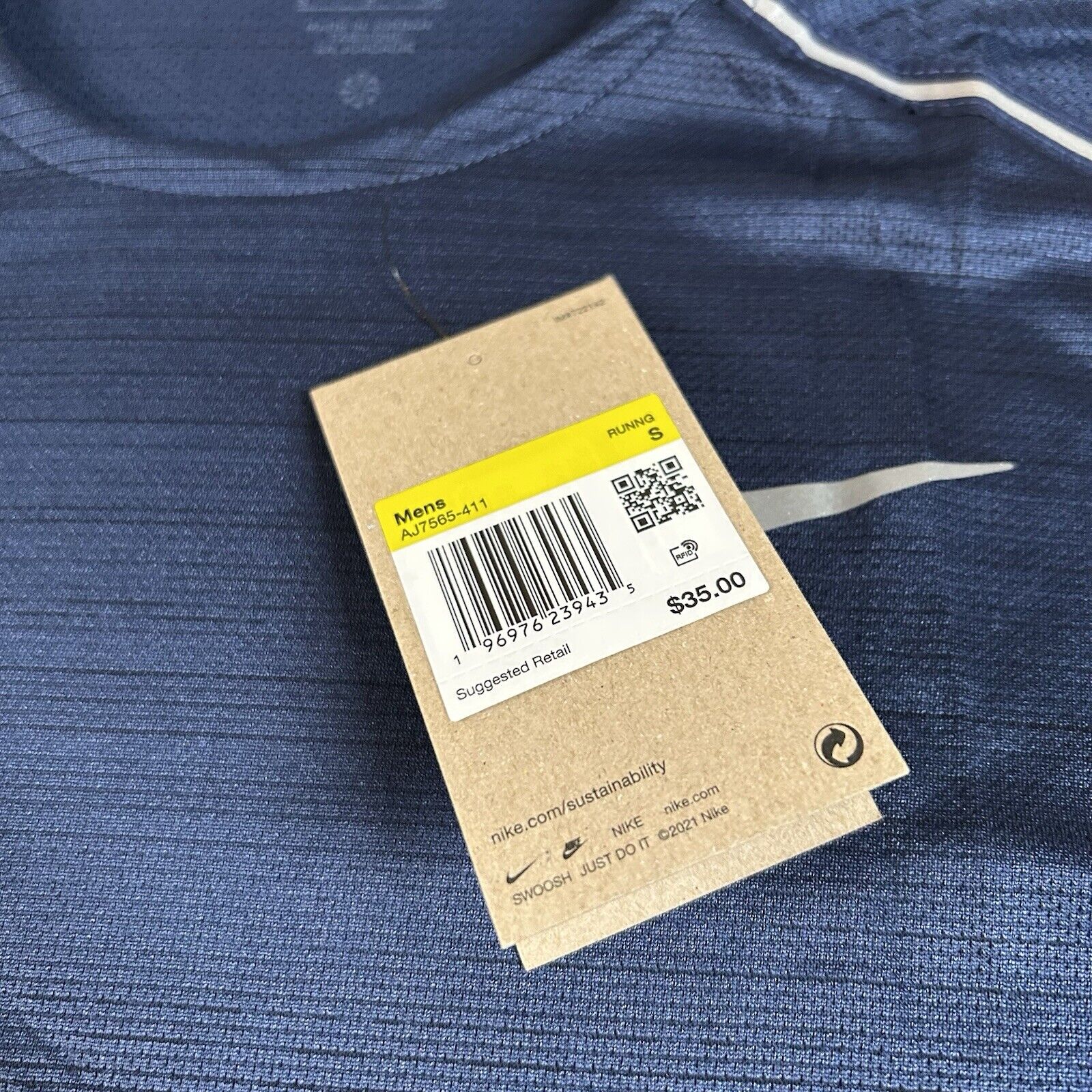 Nike Running Shirt Mens Small Navy Dri-Fit Mesh Lightweight Short Sleeve New